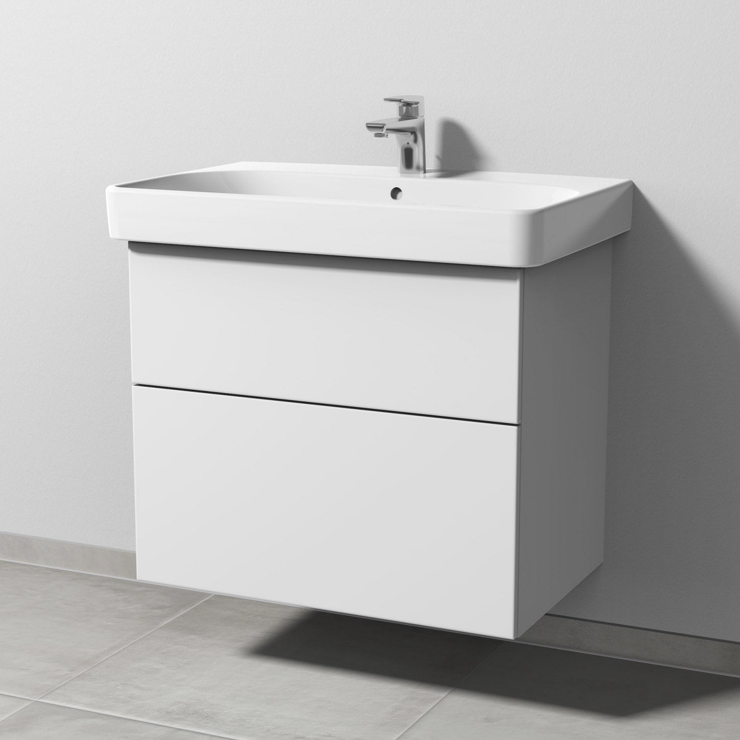 Sanipa 3way Waschtischunterbau für Keramik-Waschtisch Smyle Square 75 cm, 2 Auszüge mit Push to open