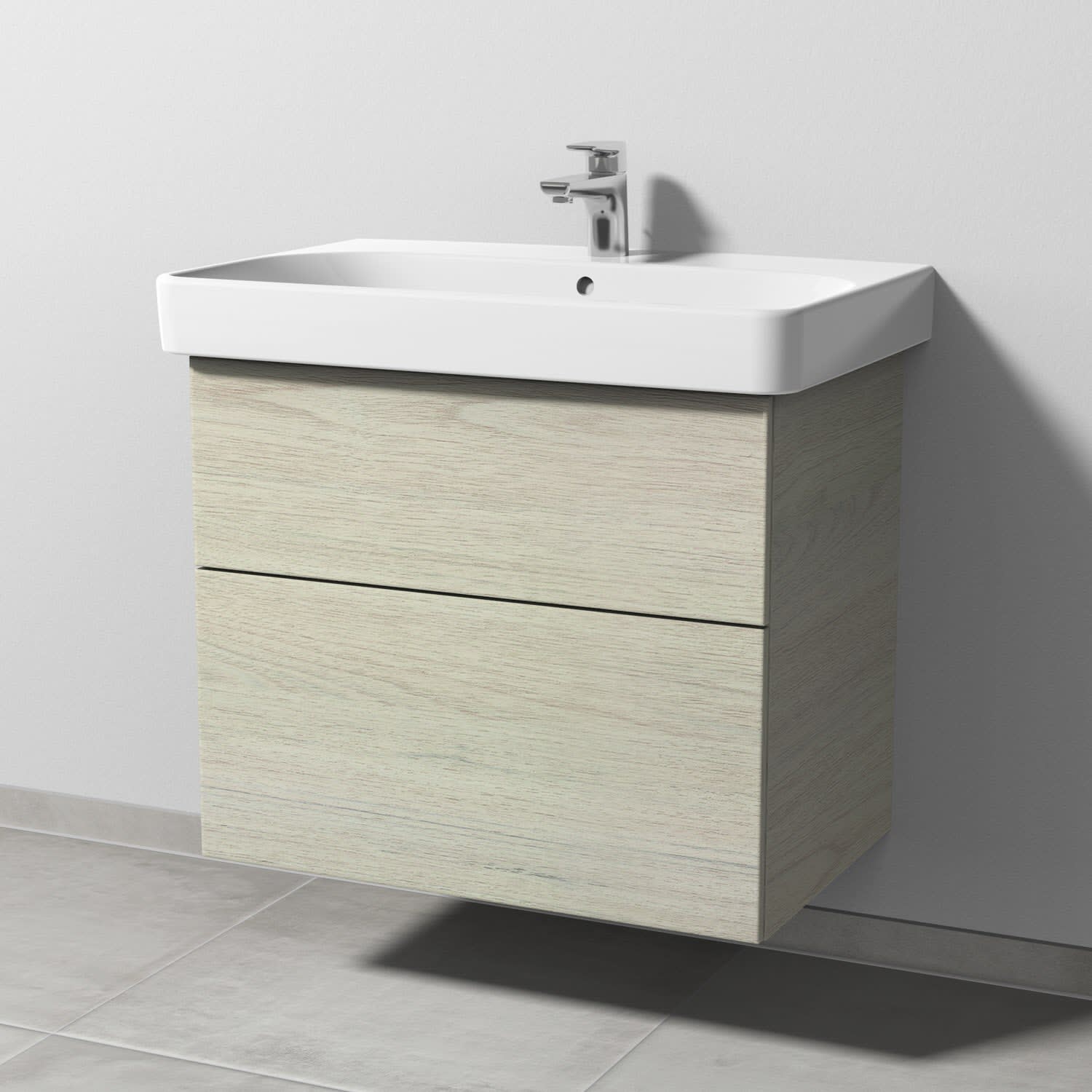 Sanipa 3way Waschtischunterbau für Keramik-Waschtisch Smyle Square 75 cm, 2 Auszüge mit Push to open