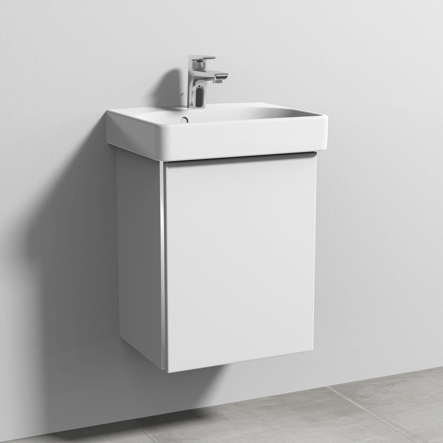Sanipa 3way Waschtischunterbau für Keramik-Waschtisch Smyle Square 45 cm, 1 Tür, Anschlag rechts, mit Griffleiste