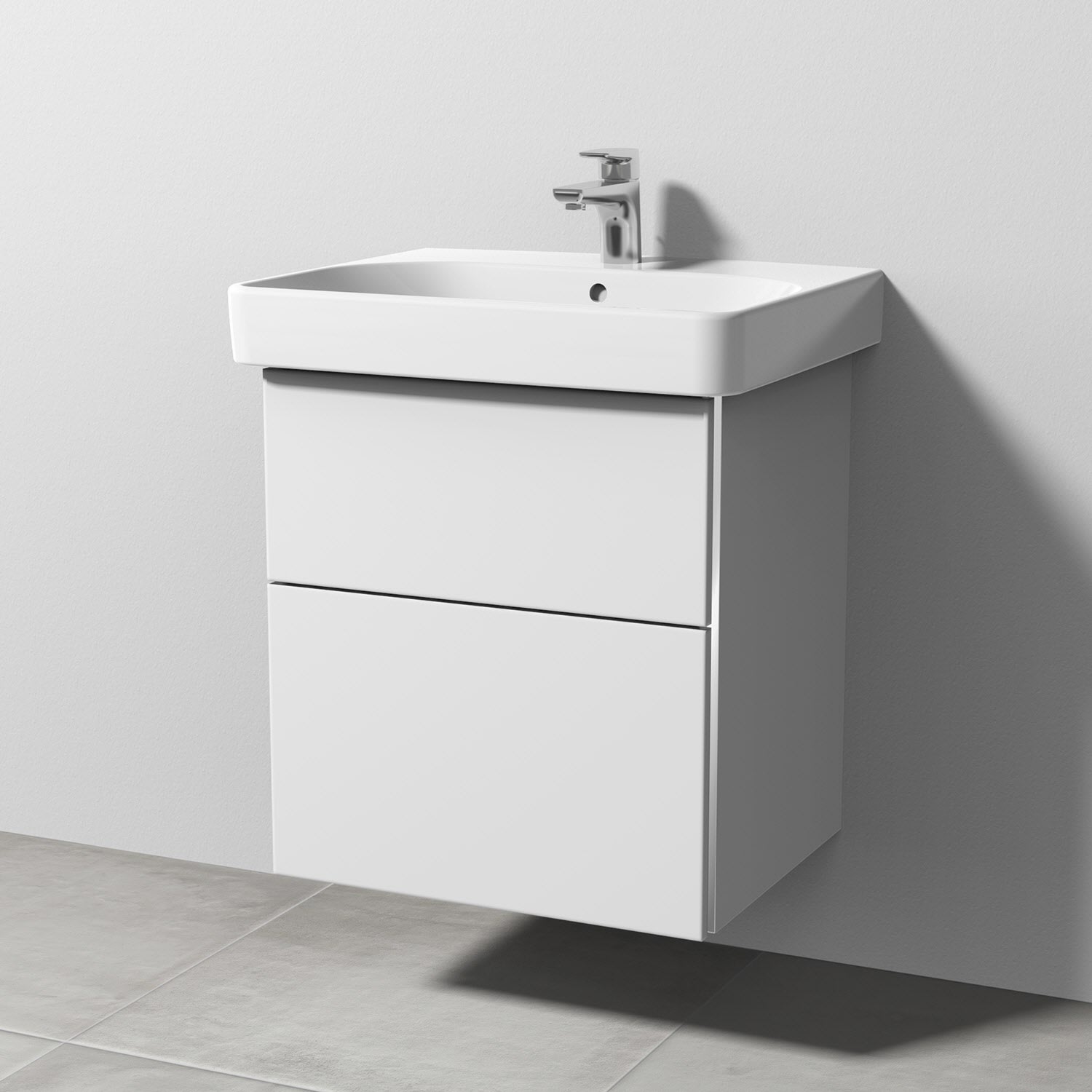 Sanipa 3way Waschtischunterbau für Keramik-Waschtisch Smyle Square 60 cm, 2 Auszüge mit Griffleisten