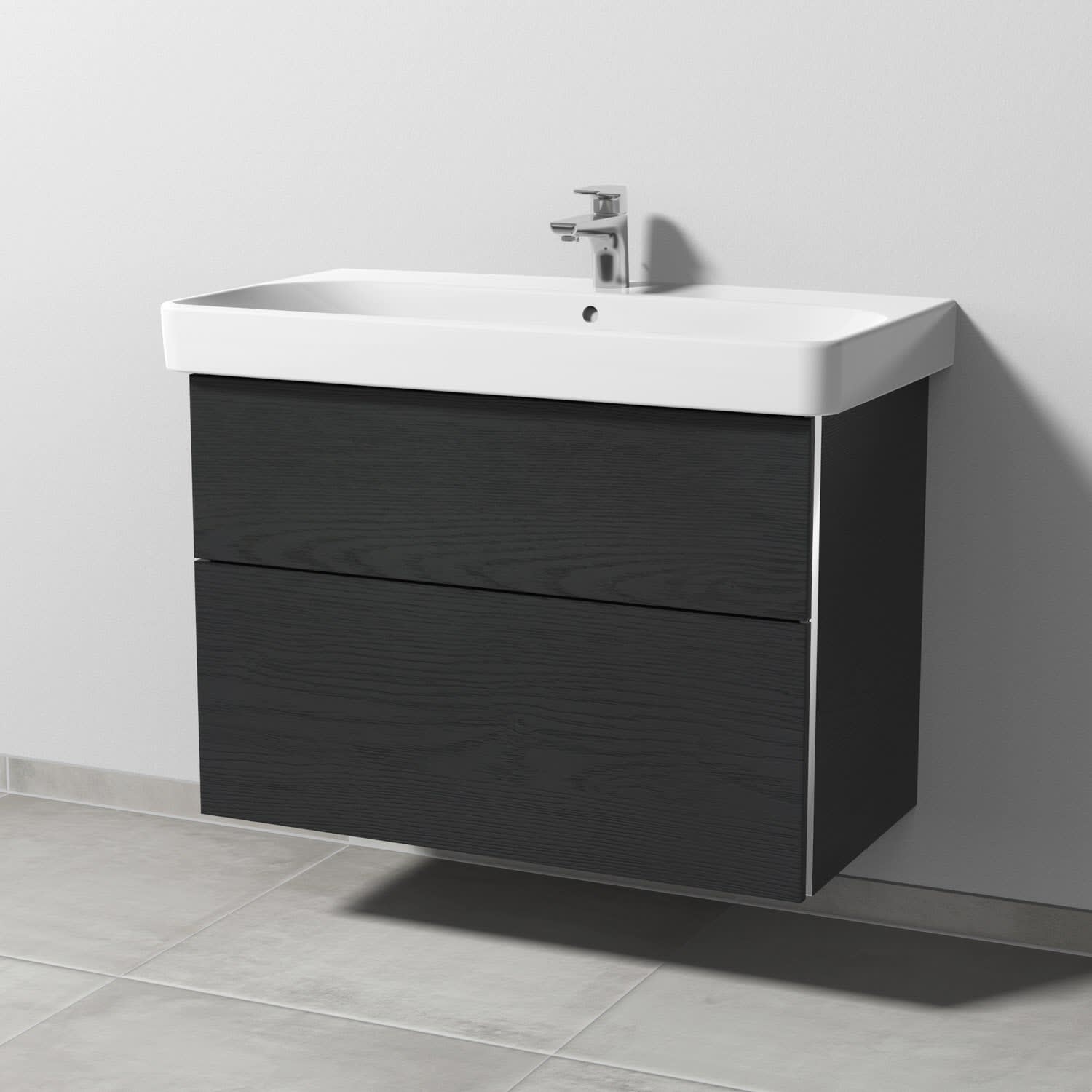 Sanipa 3way Waschtischunterbau für Keramik-Waschtisch Smyle Square 90 cm, 2 Auszüge mit Griffleisten