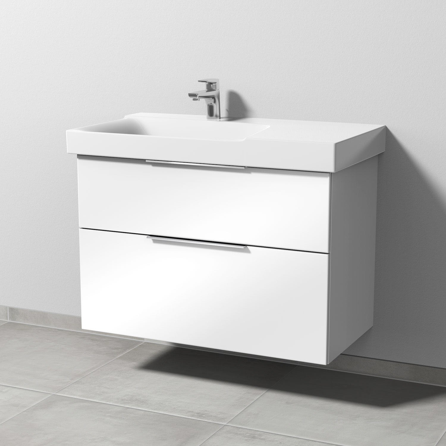 Sanipa 3way Waschtischunterbau für Keramik-Waschtisch Xeno² 90 cm, 2 Auszüge mit Aufsatzgriff, Ablagefläche rechts