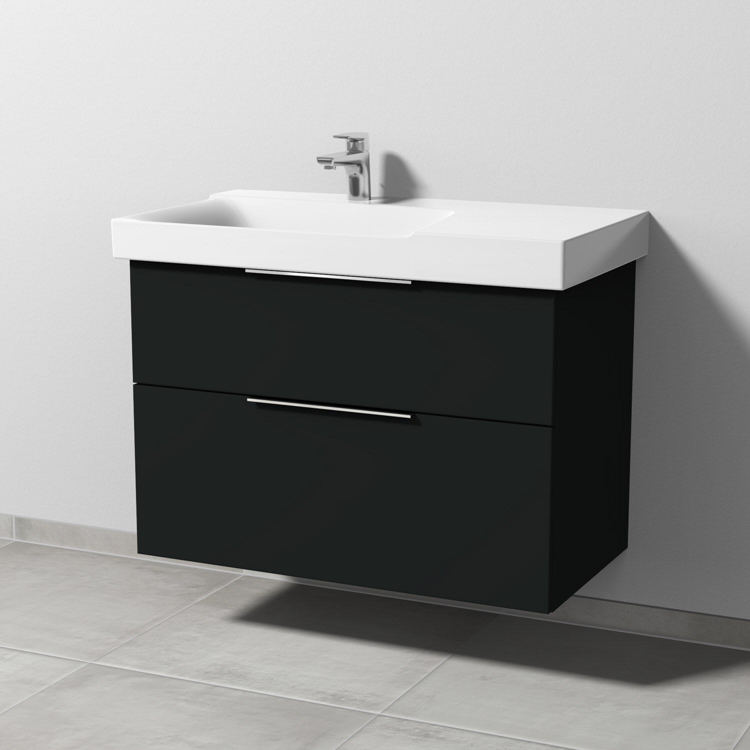Sanipa 3way Waschtischunterbau für Keramik-Waschtisch Xeno² 90 cm, 2 Auszüge mit Aufsatzgriff, Ablagefläche rechts
