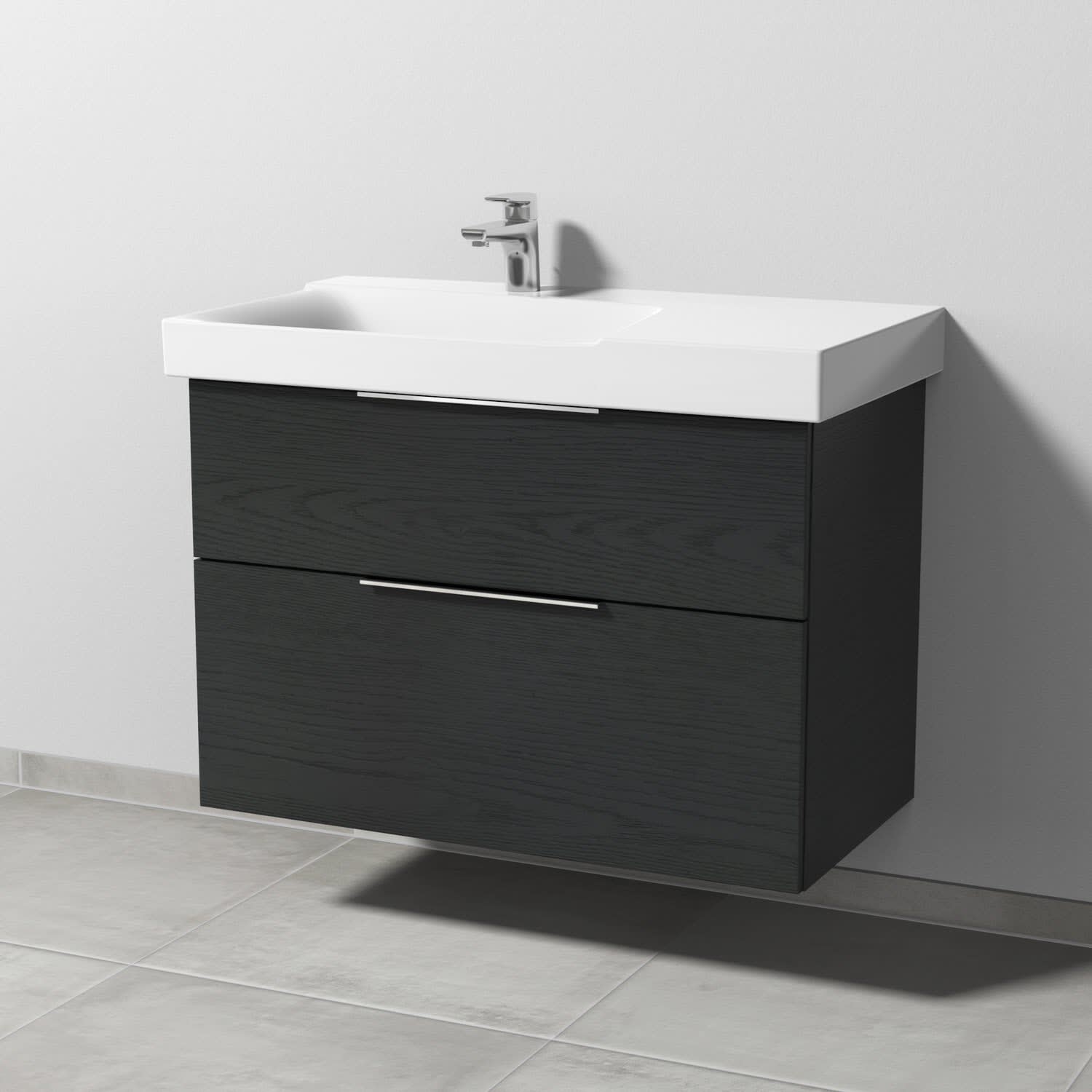 Sanipa 3way Waschtischunterbau für Keramik-Waschtisch Xeno² 90 cm, 2 Auszüge mit Aufsatzgriff, Ablagefläche rechts