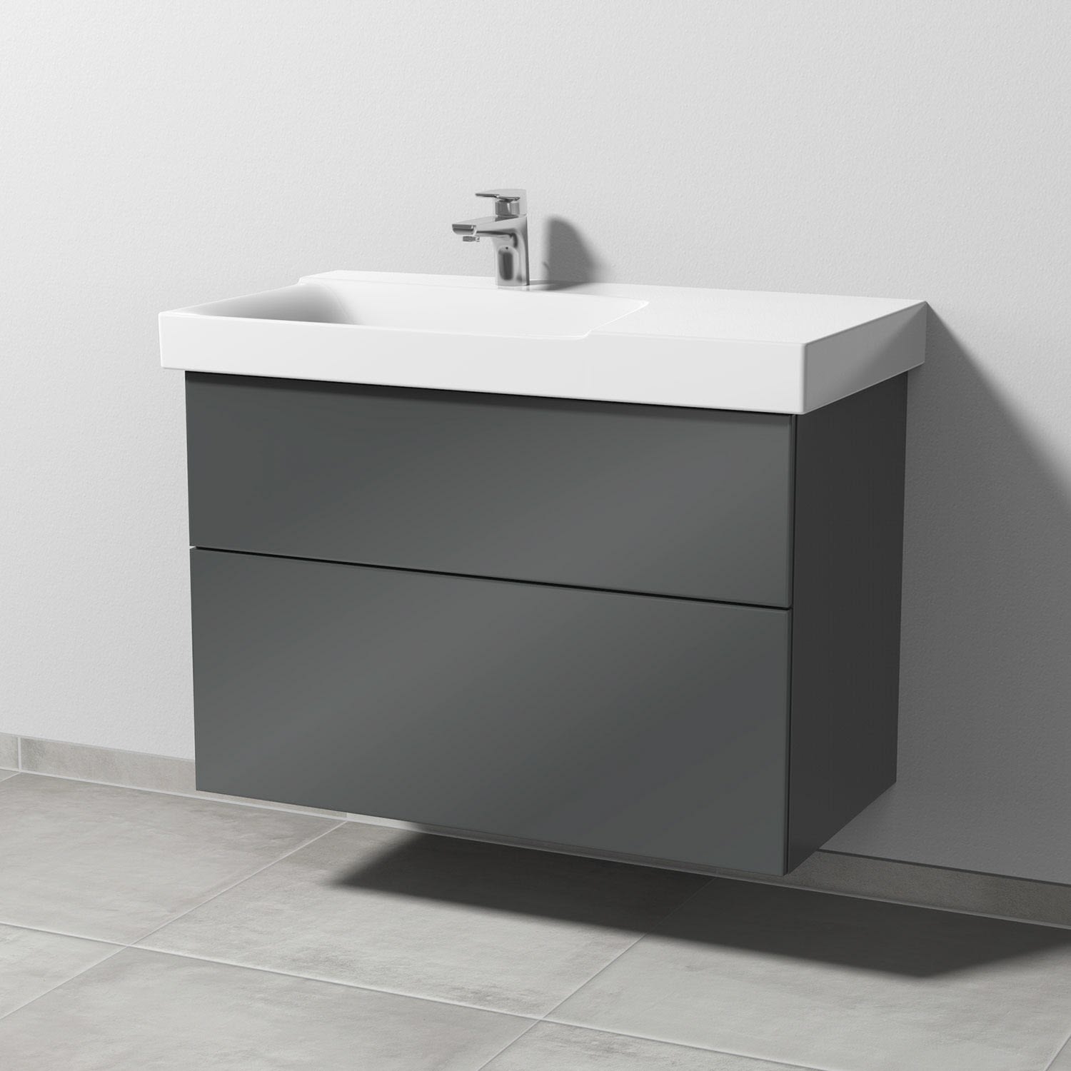 Sanipa 3way Waschtischunterbau für Keramik-Waschtisch Xeno² 90 cm, 2 Auszüge mit Push to open, Ablagefläche rechts