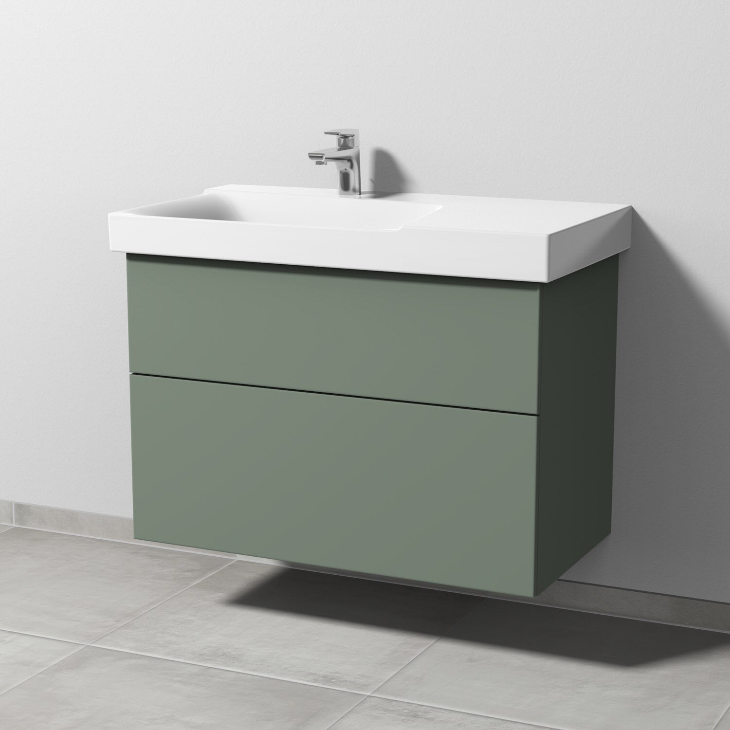 Sanipa 3way Waschtischunterbau für Keramik-Waschtisch Xeno² 90 cm, 2 Auszüge mit Push to open, Ablagefläche rechts