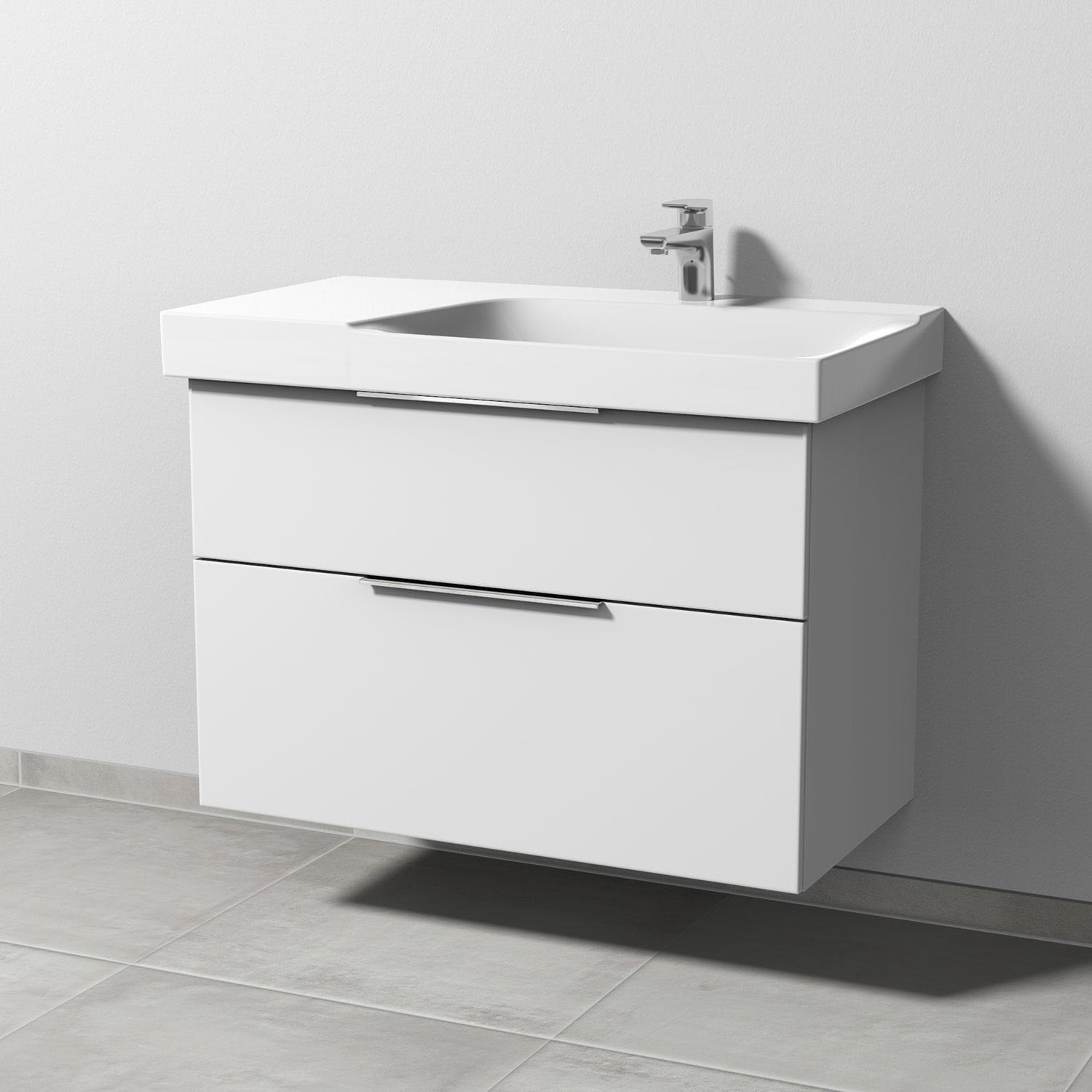 Sanipa 3way Waschtischunterbau für Keramik-Waschtisch Xeno² 90 cm, 2 Auszüge mit Aufsatzgriff, Ablagefläche links