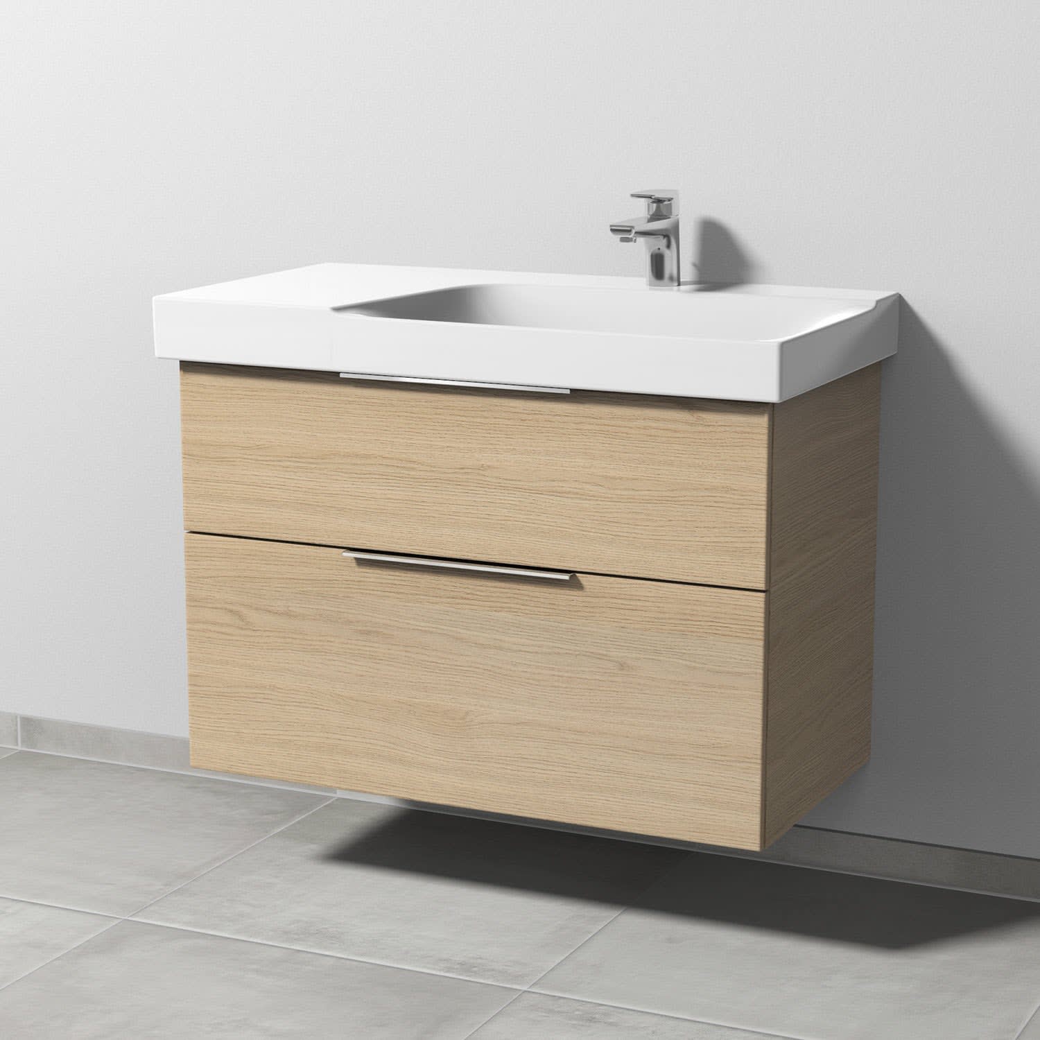 Sanipa 3way Waschtischunterbau für Keramik-Waschtisch Xeno² 90 cm, 2 Auszüge mit Aufsatzgriff, Ablagefläche links
