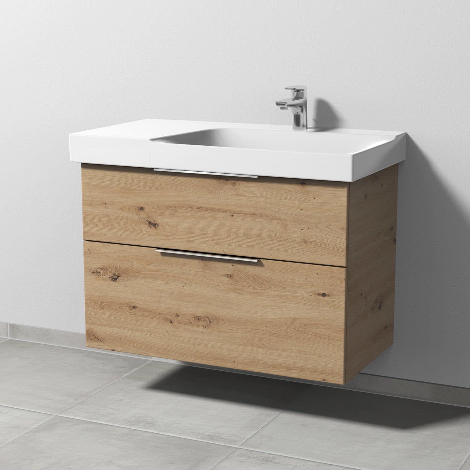 Sanipa 3way Waschtischunterbau für Keramik-Waschtisch Xeno² 90 cm, 2 Auszüge mit Aufsatzgriff, Ablagefläche links