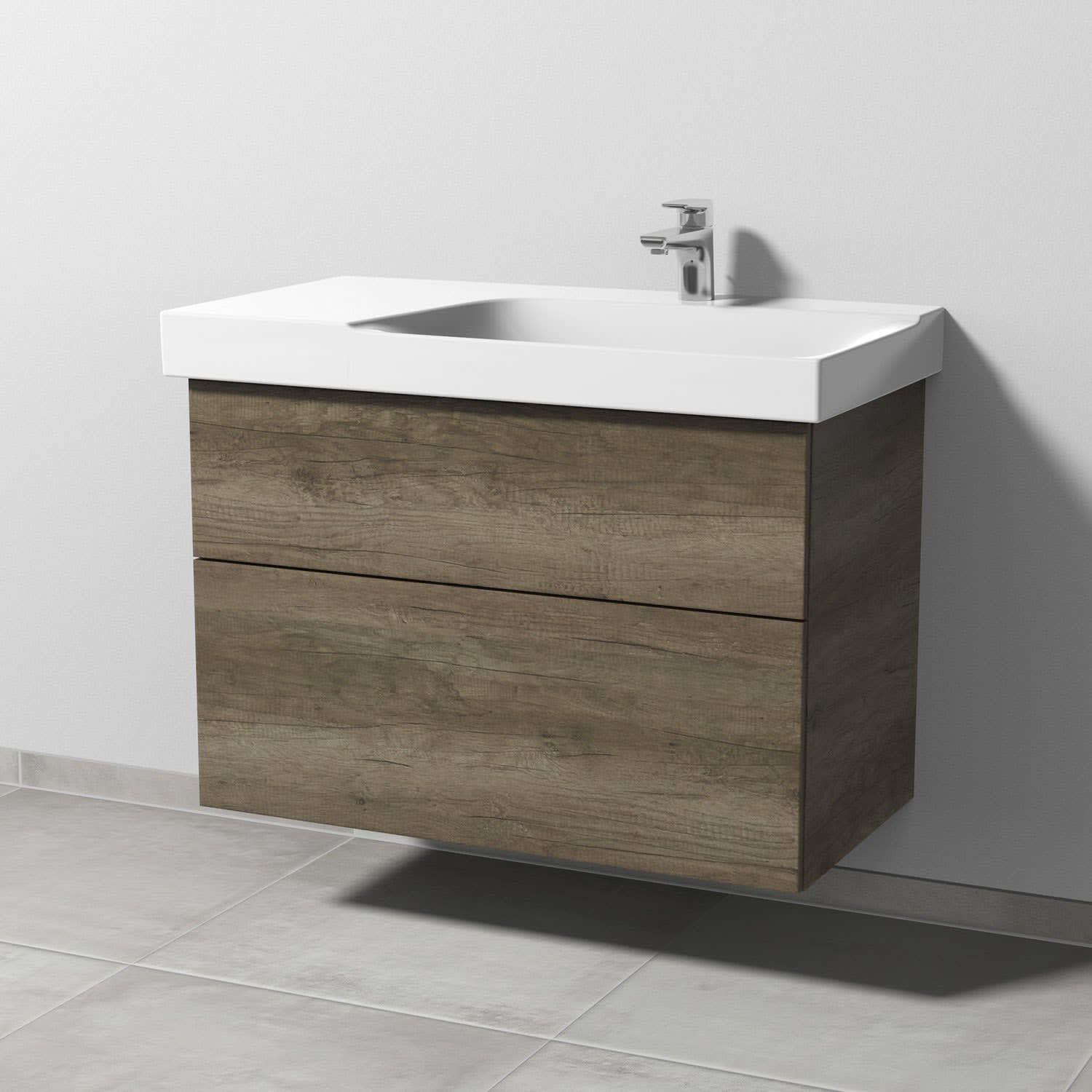 Sanipa 3way Waschtischunterbau für Keramik-Waschtisch Xeno² 90 cm, 2 Auszüge mit Push to open, Ablagefläche links