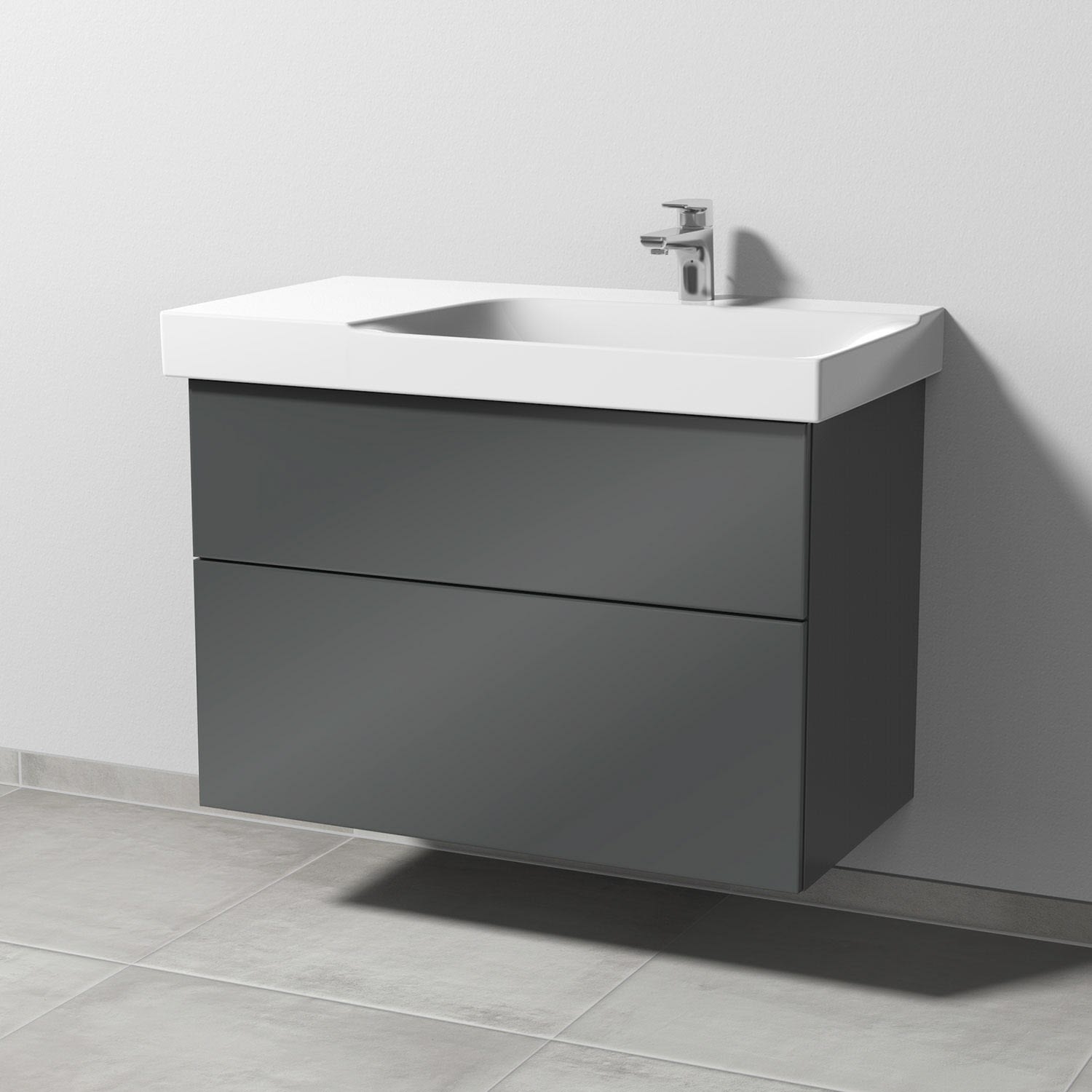 Sanipa 3way Waschtischunterbau für Keramik-Waschtisch Xeno² 90 cm, 2 Auszüge mit Push to open, Ablagefläche links