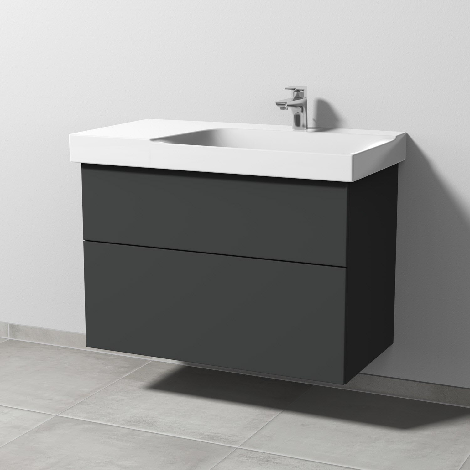 Sanipa 3way Waschtischunterbau für Keramik-Waschtisch Xeno² 90 cm, 2 Auszüge mit Push to open, Ablagefläche links