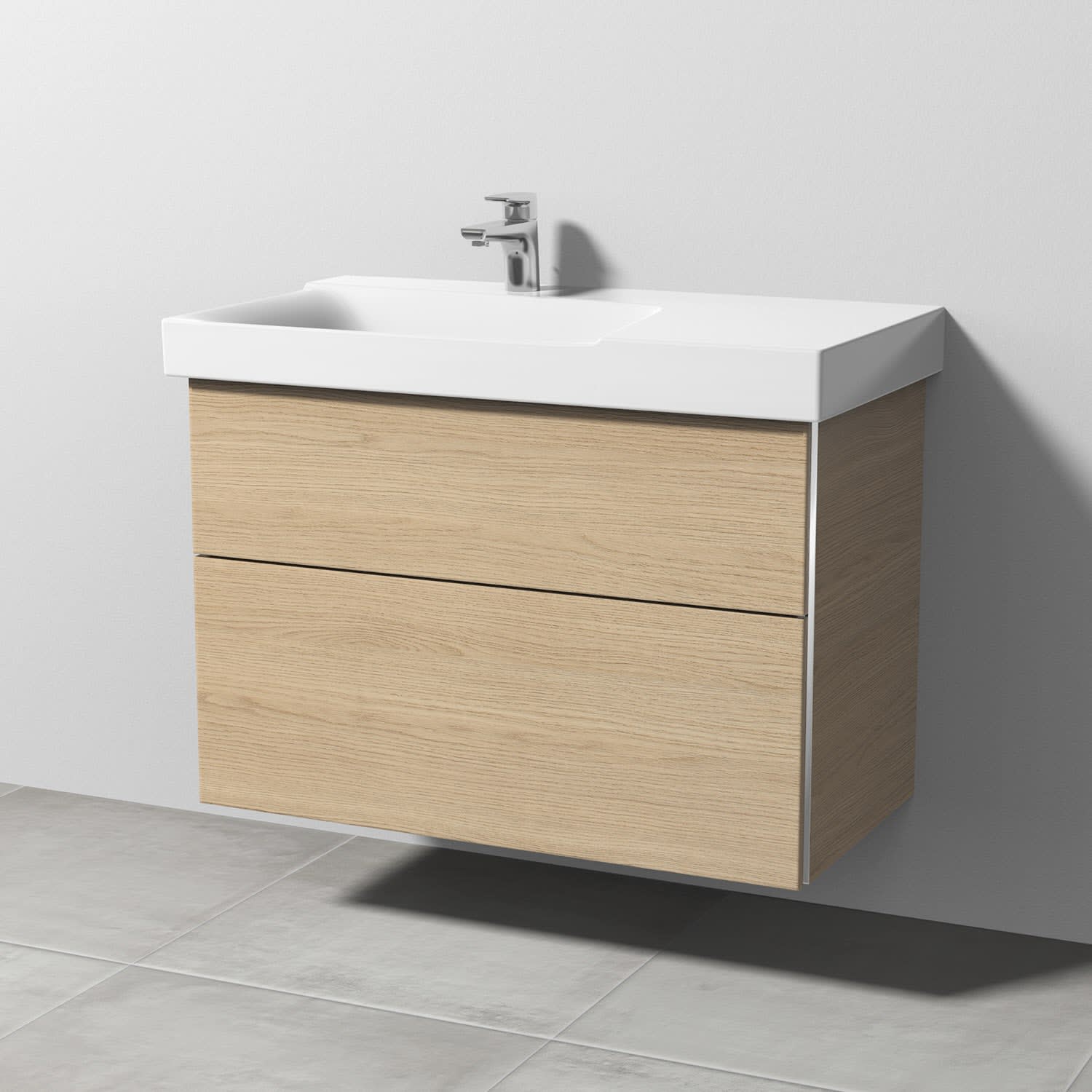 Sanipa 3way Waschtischunterbau für Keramik-Waschtisch Xeno² 90 cm, 2 Auszüge mit Griffleisten, Ablagefläche rechts