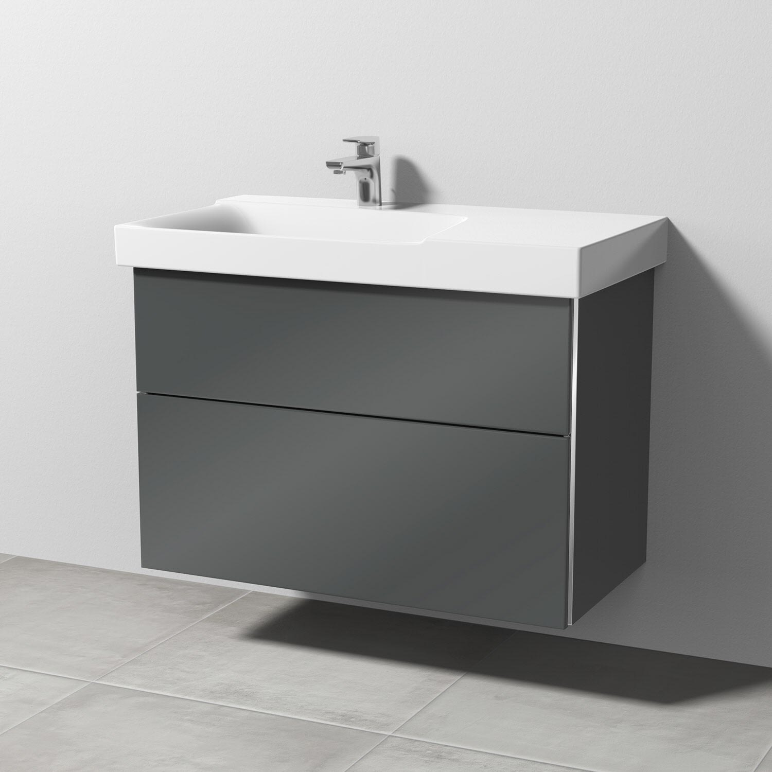Sanipa 3way Waschtischunterbau für Keramik-Waschtisch Xeno² 90 cm, 2 Auszüge mit Griffleisten, Ablagefläche rechts