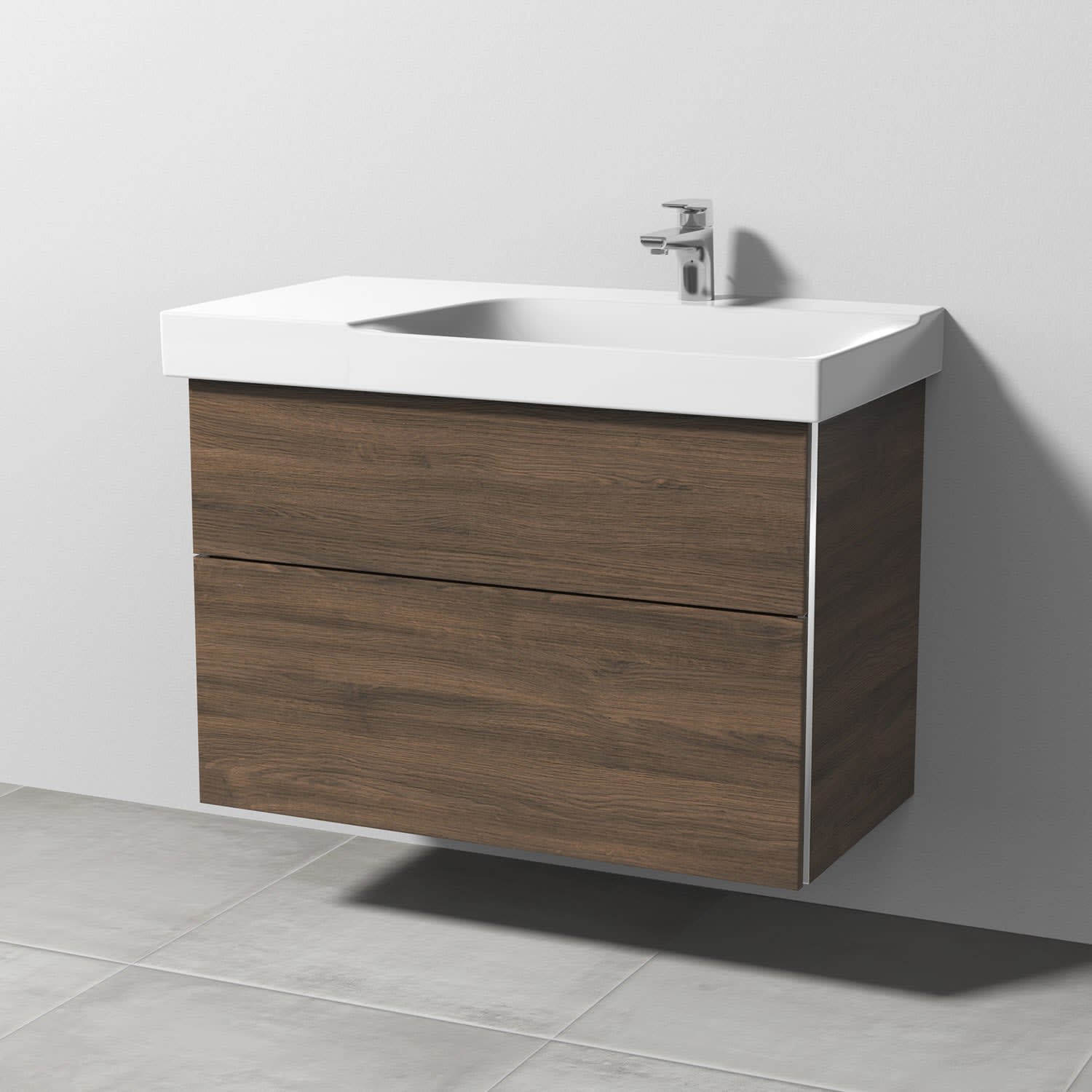 Sanipa 3way Waschtischunterbau für Keramik-Waschtisch Xeno² 90 cm, 2 Auszüge mit Griffleisten, Ablagefläche links