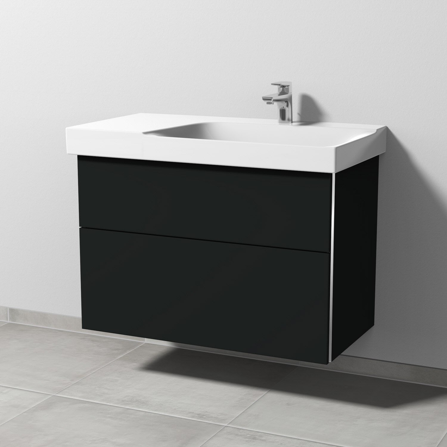 Sanipa 3way Waschtischunterbau für Keramik-Waschtisch Xeno² 90 cm, 2 Auszüge mit Griffleisten, Ablagefläche links