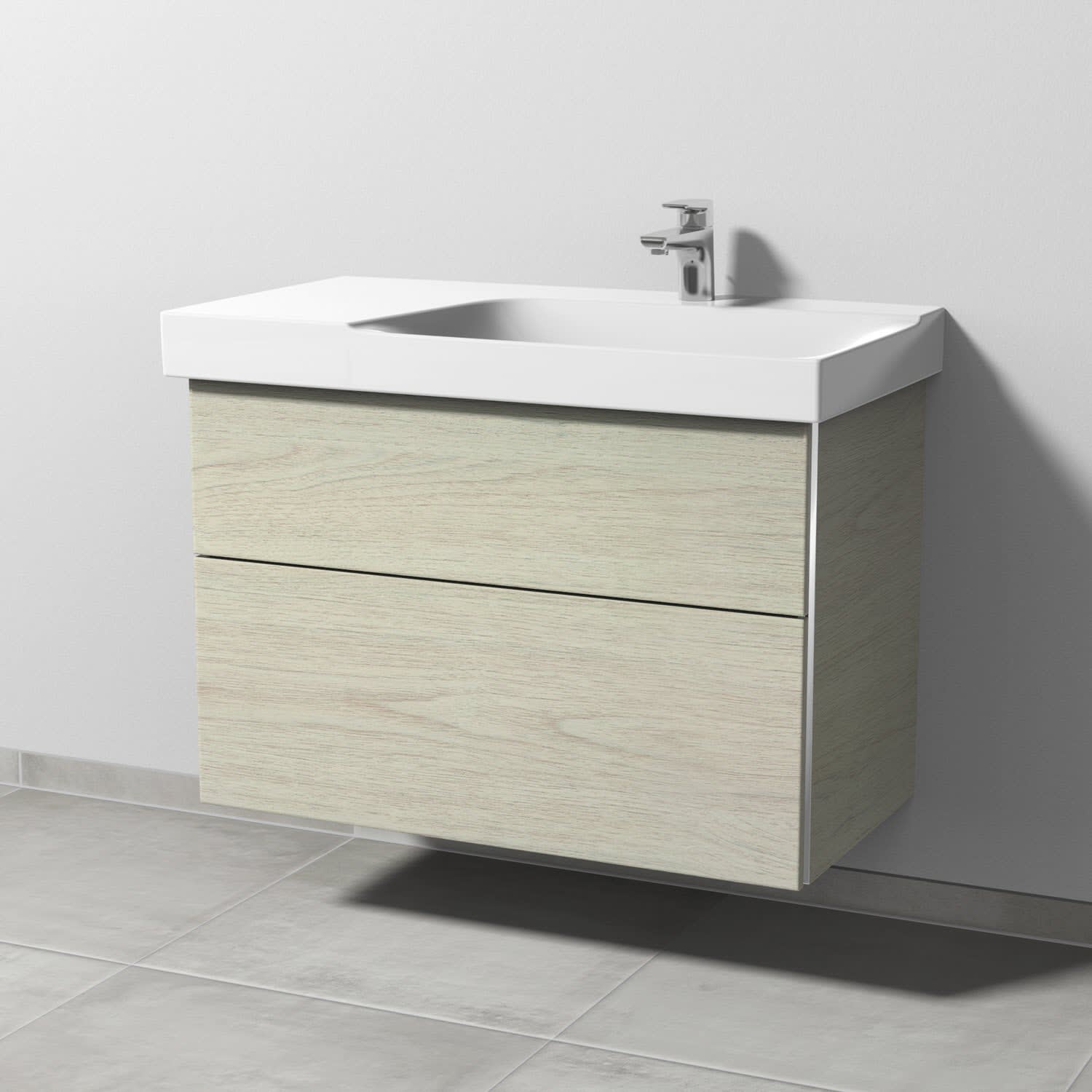 Sanipa 3way Waschtischunterbau für Keramik-Waschtisch Xeno² 90 cm, 2 Auszüge mit Griffleisten, Ablagefläche links