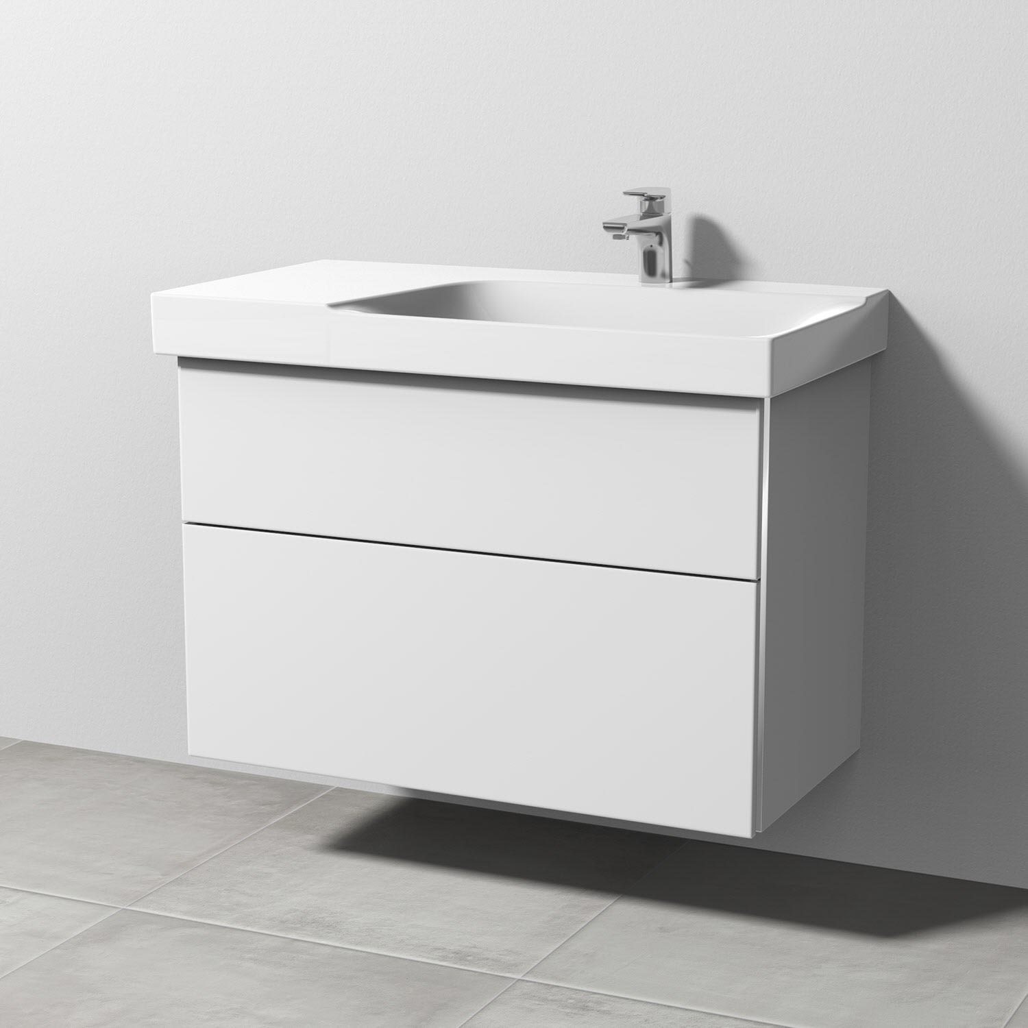 Sanipa 3way Waschtischunterbau für Keramik-Waschtisch Xeno² 90 cm, 2 Auszüge mit Griffleisten, Ablagefläche links