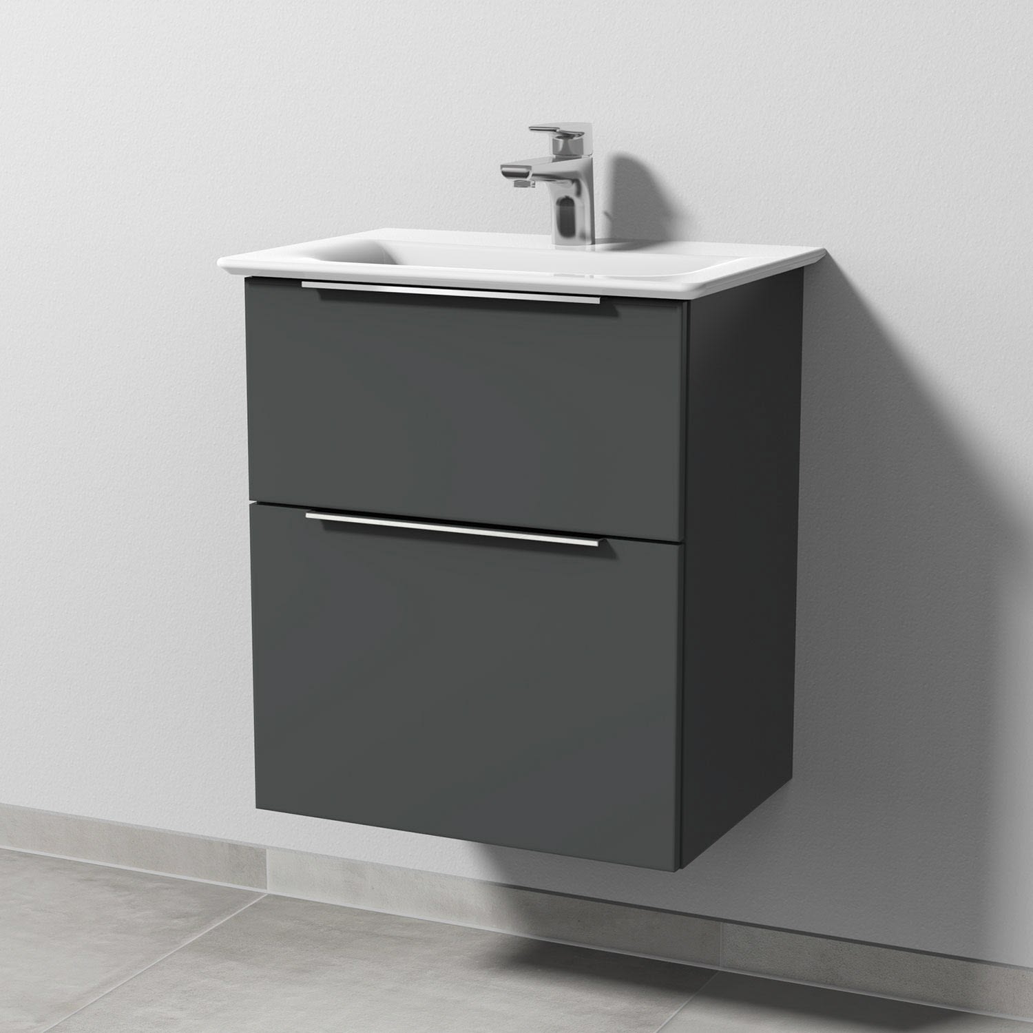Sanipa 3way Waschtischunterbau für Keramik-Waschtisch Connect Air 54 cm, 2 Auszüge mit Aufsatzgriff