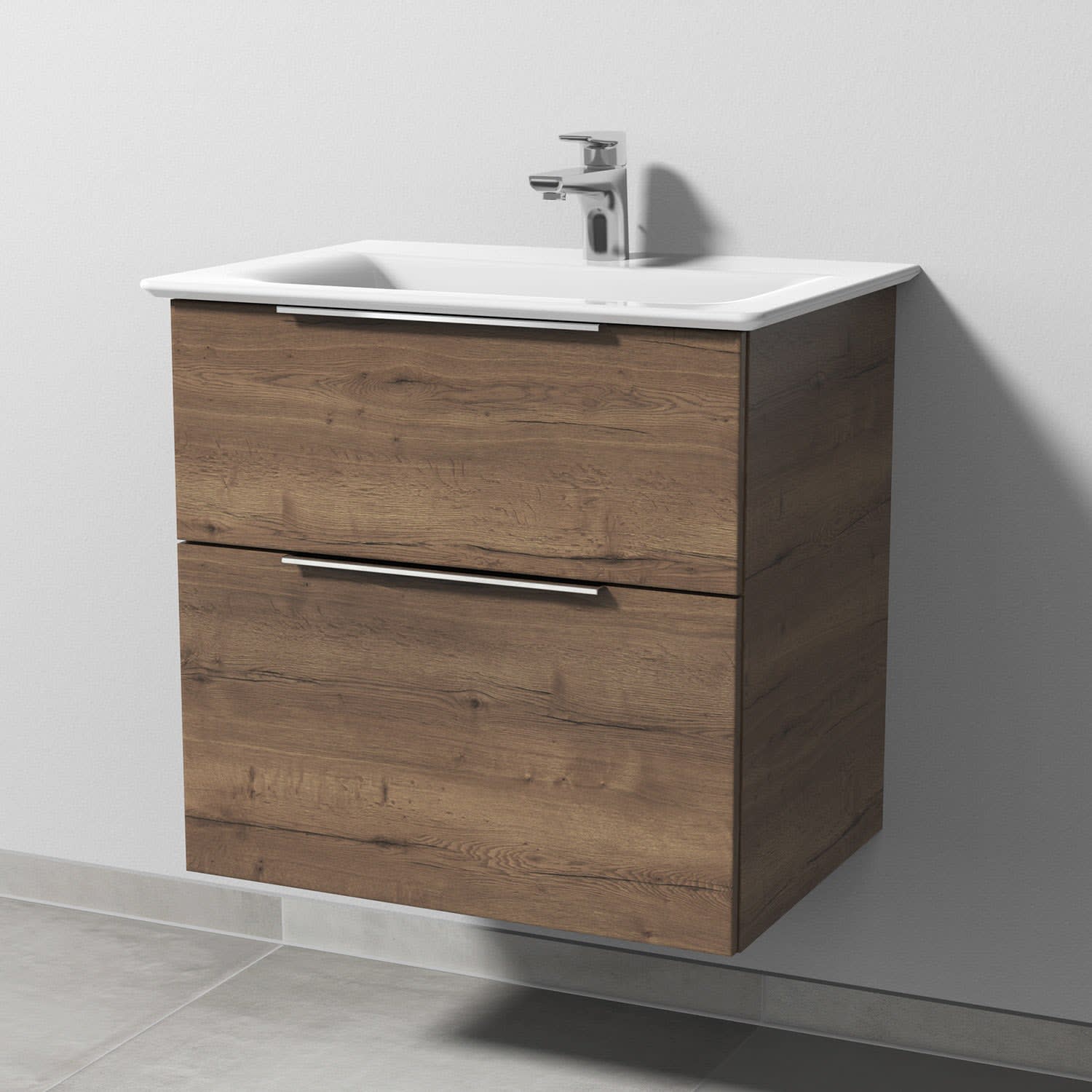Sanipa 3way Waschtischunterbau für Keramik-Waschtisch Connect Air 64 cm, 2 Auszüge mit Aufsatzgriff
