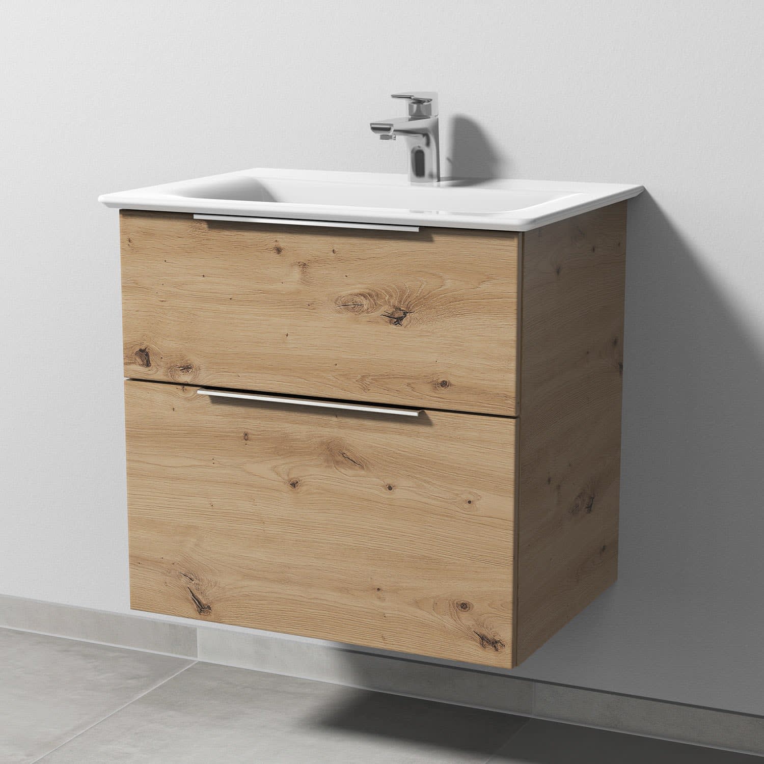 Sanipa 3way Waschtischunterbau für Keramik-Waschtisch Connect Air 64 cm, 2 Auszüge mit Aufsatzgriff