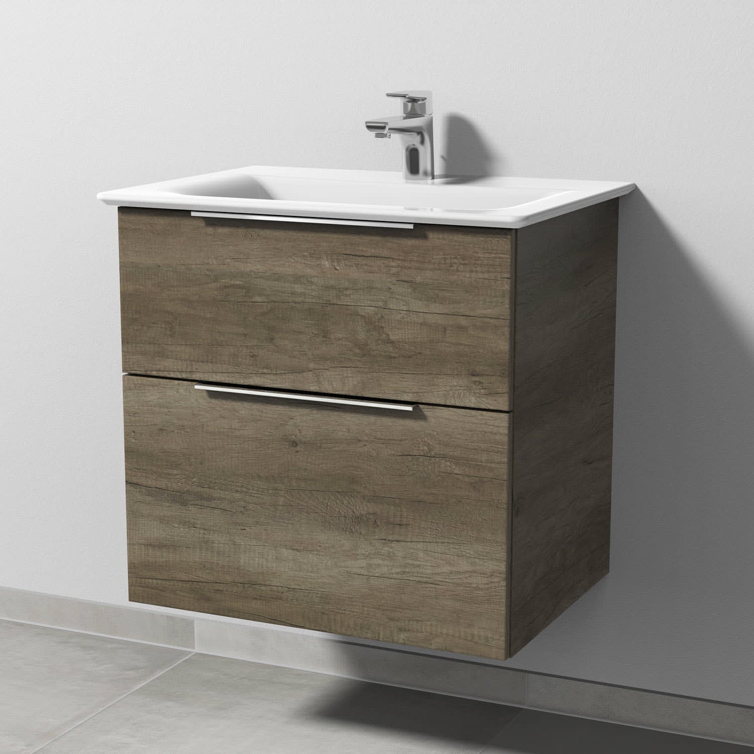 Sanipa 3way Waschtischunterbau für Keramik-Waschtisch Connect Air 64 cm, 2 Auszüge mit Aufsatzgriff