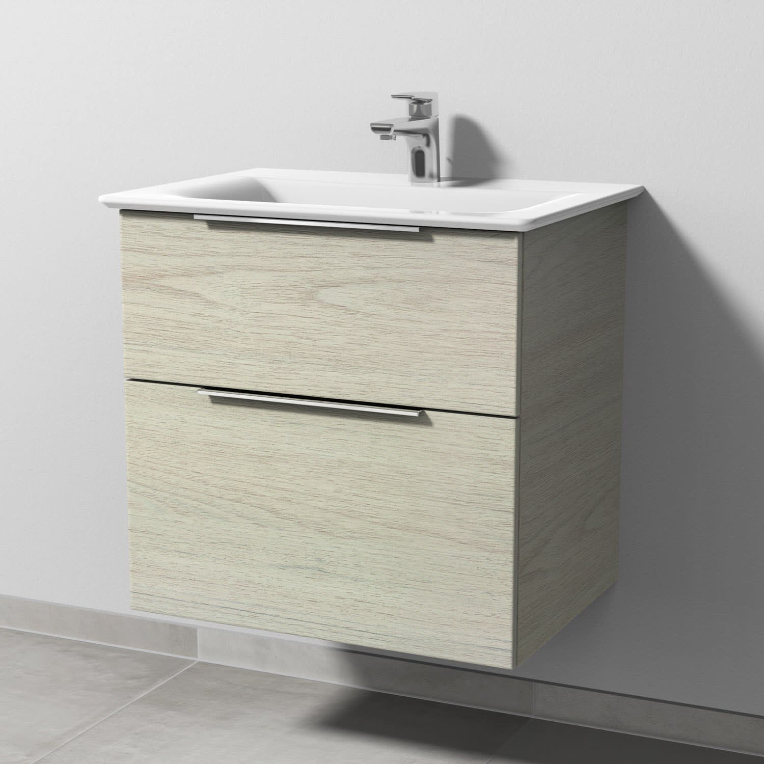 Sanipa 3way Waschtischunterbau für Keramik-Waschtisch Connect Air 64 cm, 2 Auszüge mit Aufsatzgriff