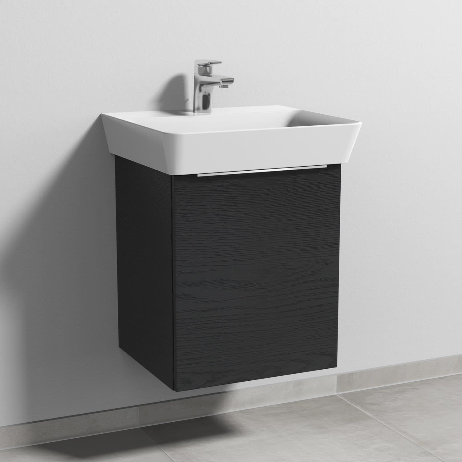 Sanipa 3way Waschtischunterbau für Keramik-Waschtisch Connect Air Cube 50 cm, 1 Tür, Anschlag rechts, mit Aufsatzgriff