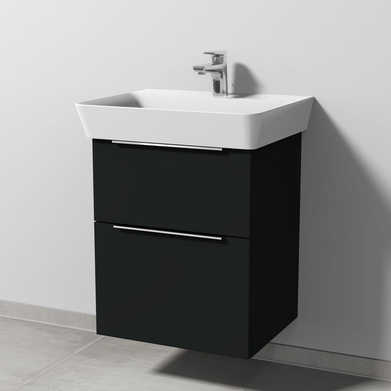 Sanipa 3way Waschtischunterbau für Keramik-Waschtisch Connect Air Cube 55 cm, 2 Auszüge mit Aufsatzgriff