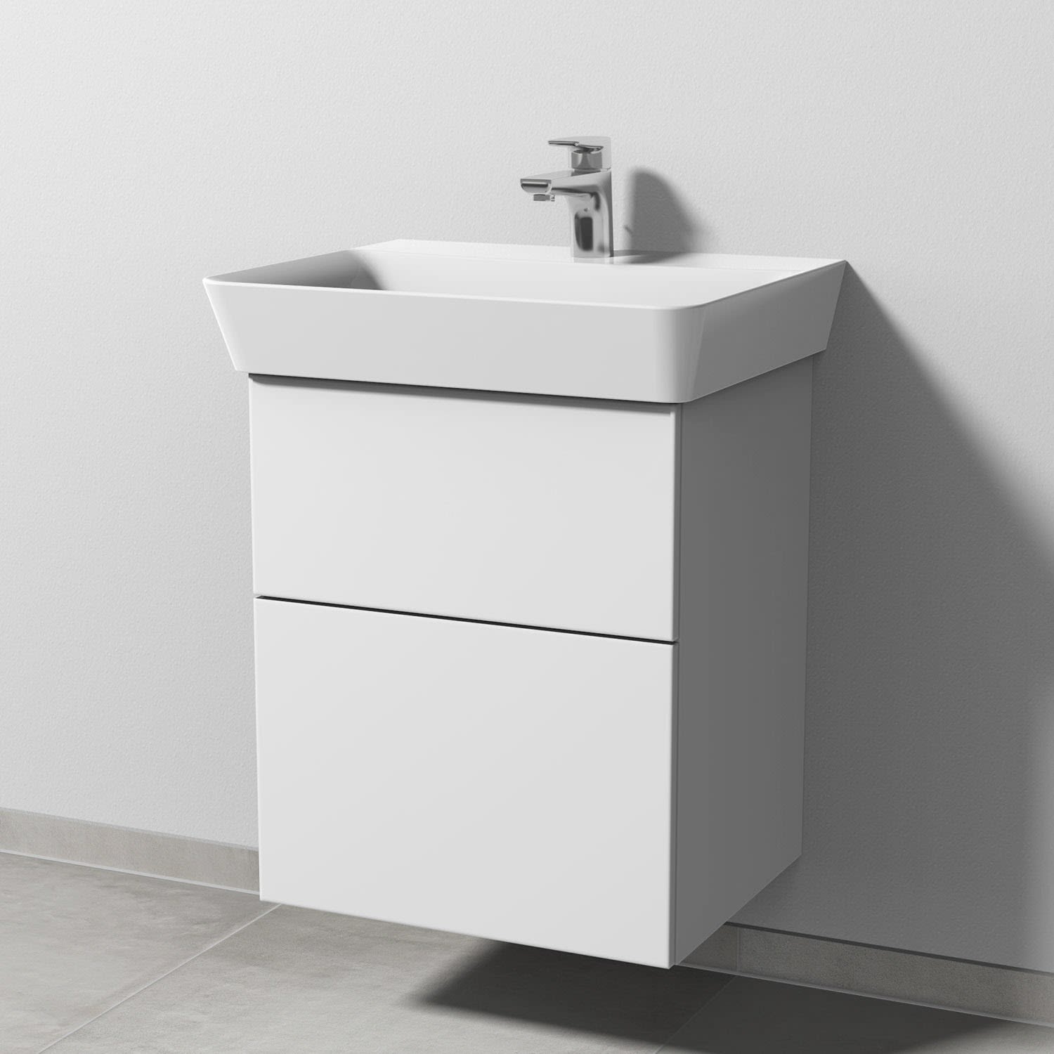Sanipa 3way Waschtischunterbau für Keramik-Waschtisch Connect Air Cube 55 cm, 2 Auszüge mit Push to open