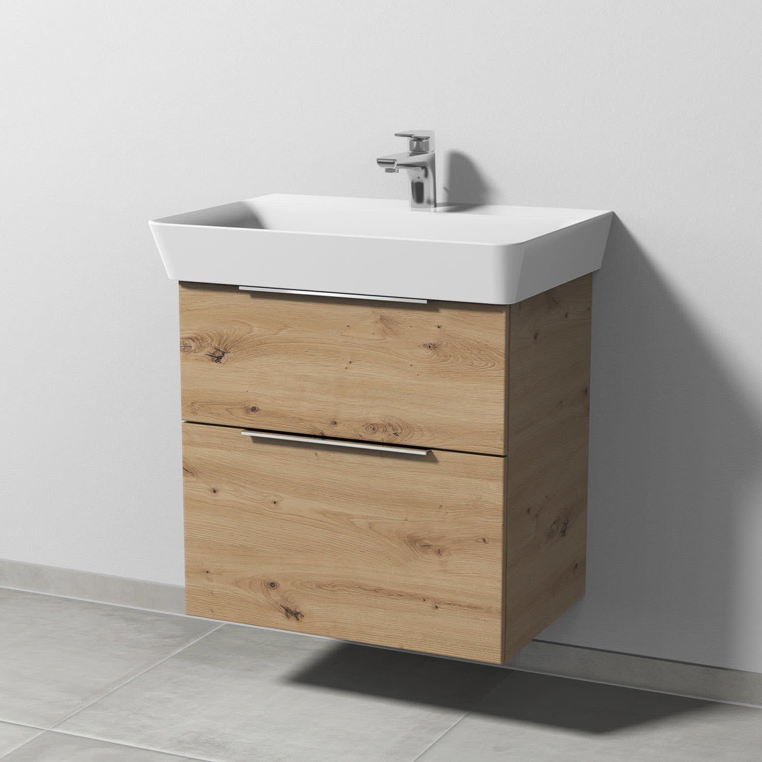 Sanipa 3way Waschtischunterbau für Keramik-Waschtisch Connect Air Cube 65 cm, 2 Auszüge mit Aufsatzgriff