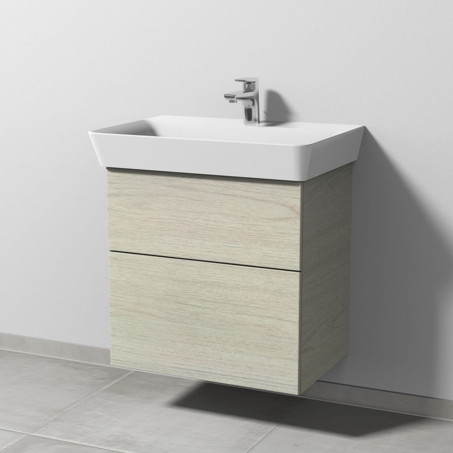 Sanipa 3way Waschtischunterbau für Keramik-Waschtisch Connect Air Cube 65 cm, 2 Auszüge mit Push to open