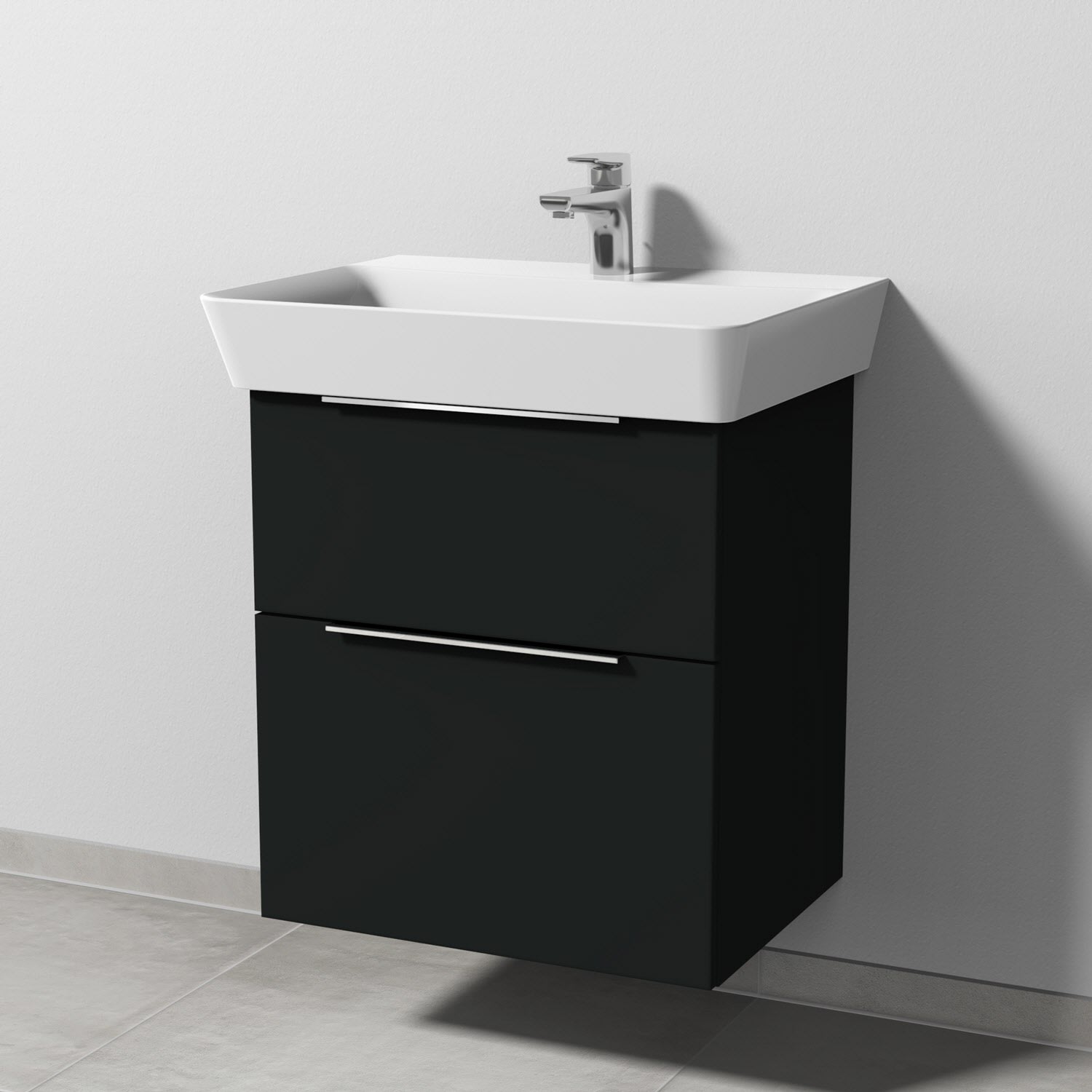 Sanipa 3way Waschtischunterbau für Keramik-Waschtisch Connect Air Cube 60 cm, 2 Auszüge mit Aufsatzgriff