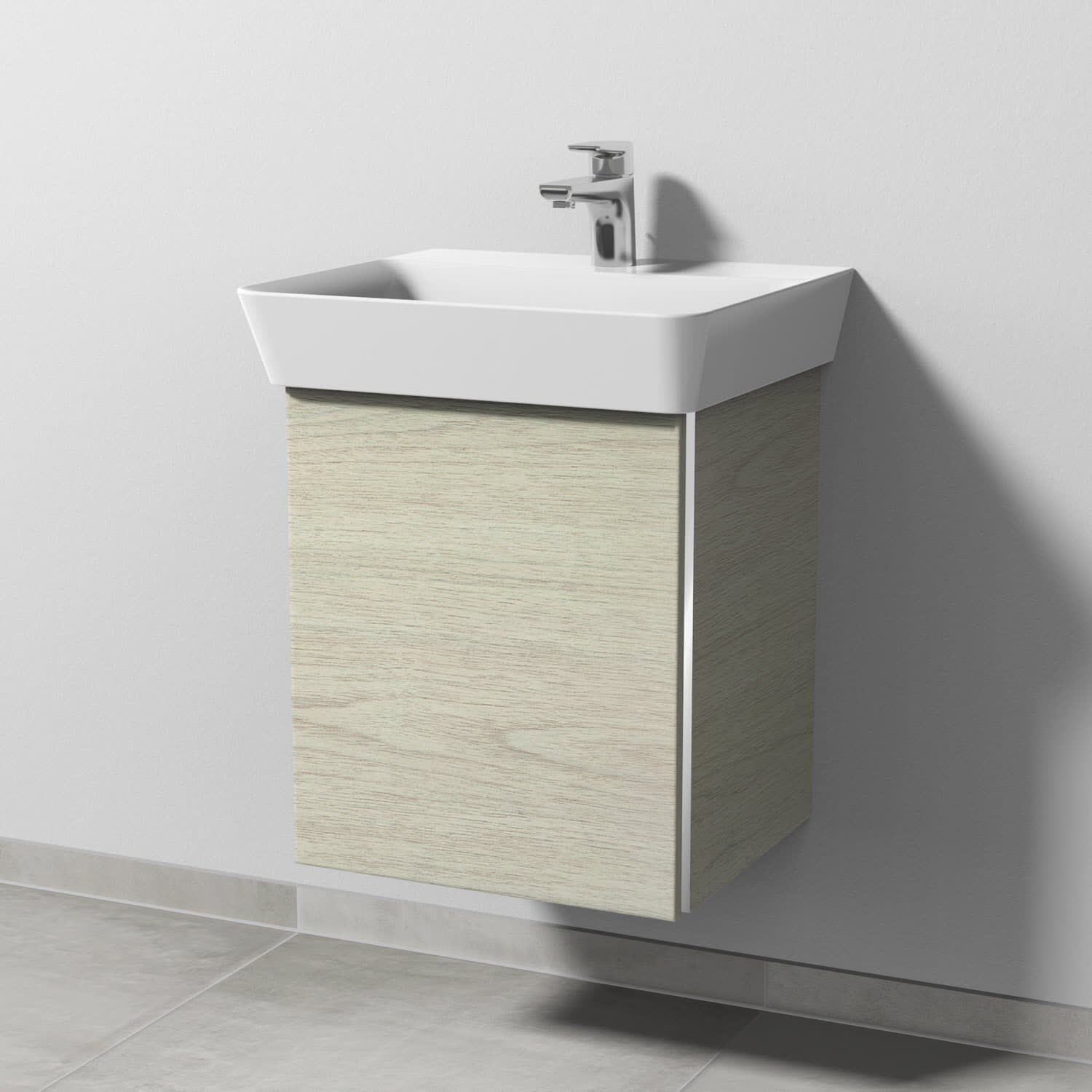 Sanipa 3way Waschtischunterbau für Keramik-Waschtisch Connect Air Cube 50 cm, 1 Tür, Anschlag links, mit Griffleiste