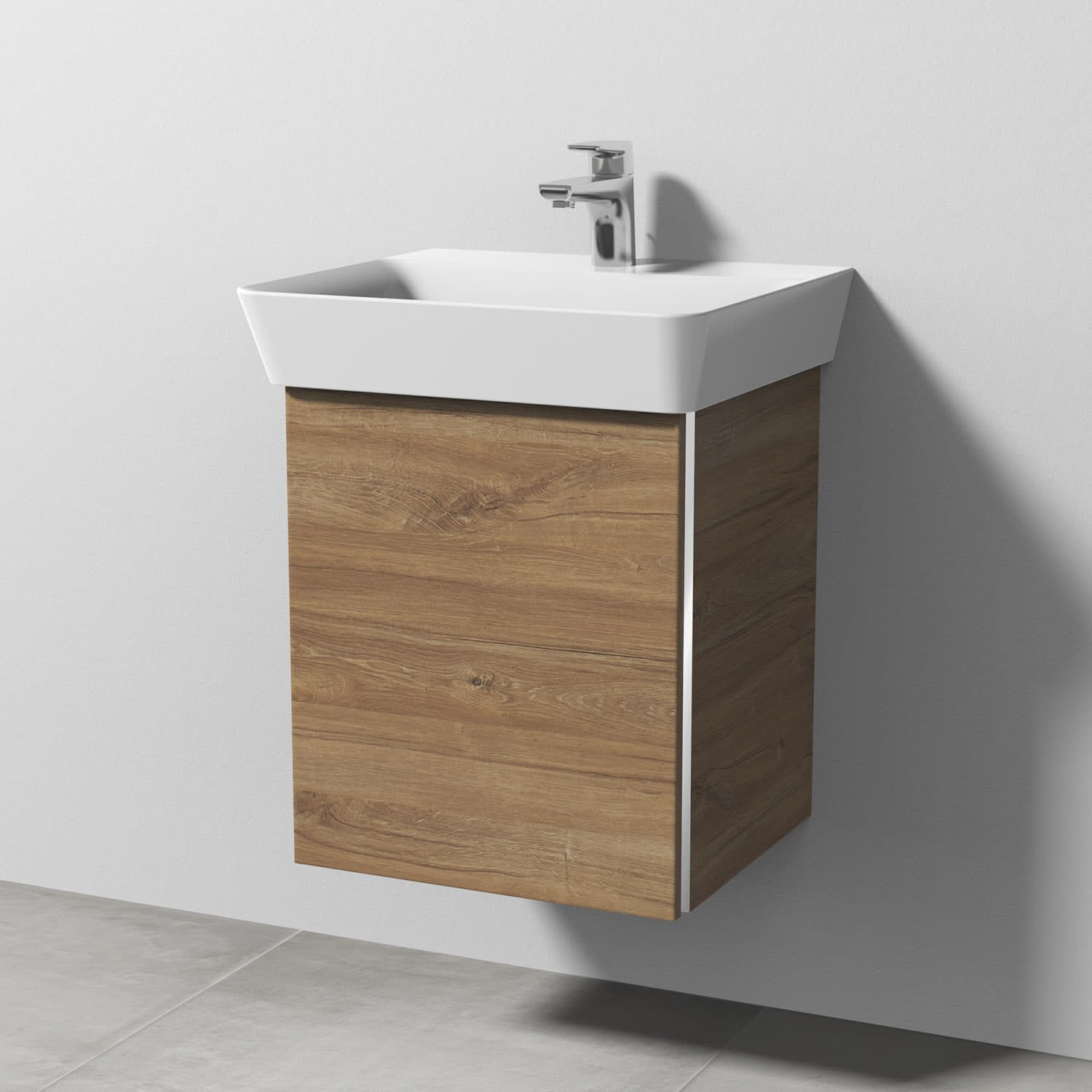 Sanipa 3way Waschtischunterbau für Keramik-Waschtisch Connect Air Cube 50 cm, 1 Tür, Anschlag links, mit Griffleiste