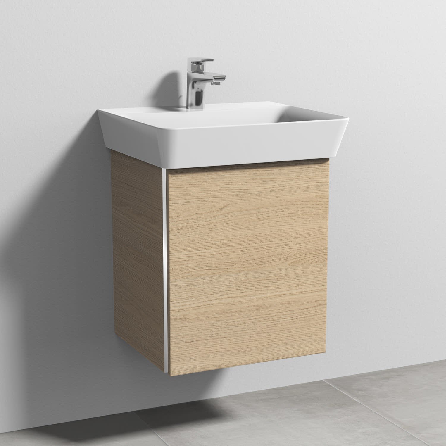 Sanipa 3way Waschtischunterbau für Keramik-Waschtisch Connect Air Cube 50 cm, 1 Tür, Anschlag rechts, mit Griffleiste