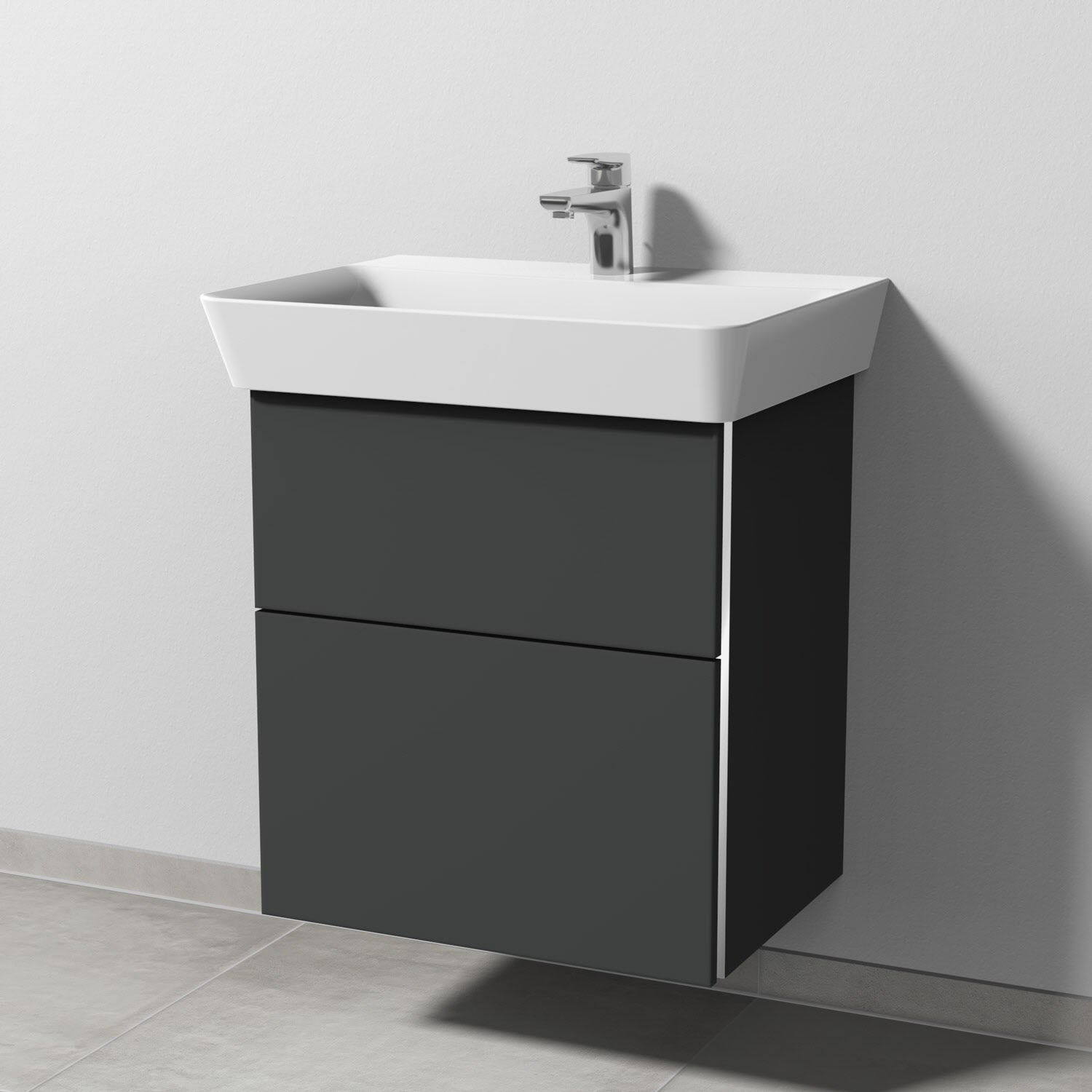 Sanipa 3way Waschtischunterbau für Keramik-Waschtisch Connect Air Cube 60 cm, 2 Auszüge mit Griffleisten