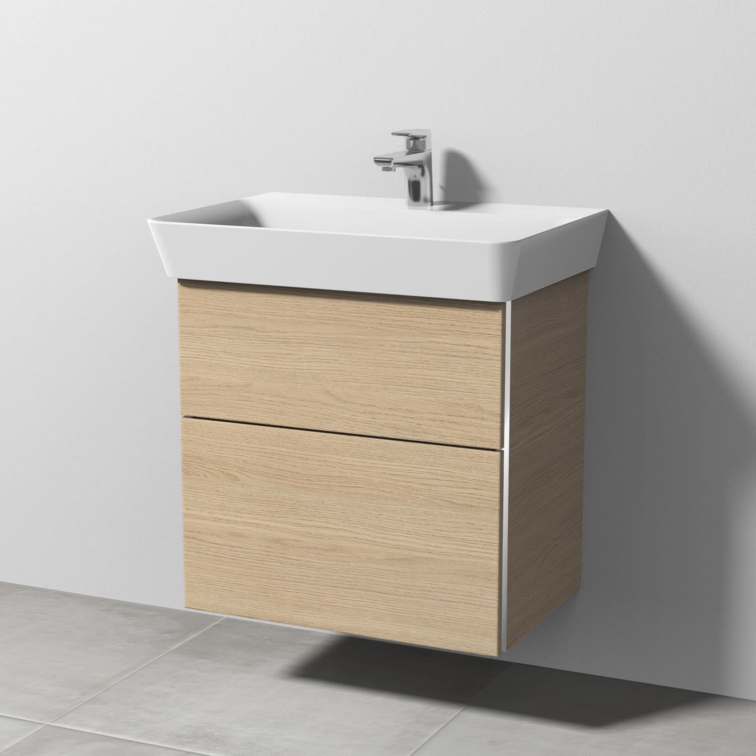 Sanipa 3way Waschtischunterbau für Keramik-Waschtisch Connect Air Cube 65 cm, 2 Auszüge mit Griffleisten
