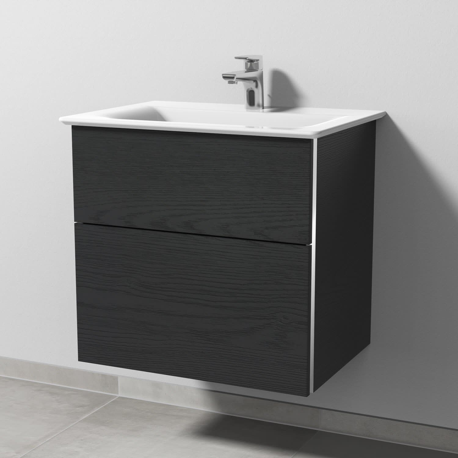 Sanipa 3way Waschtischunterbau für Keramik-Waschtisch Connect Air 64 cm, 2 Auszüge mit Griffleisten