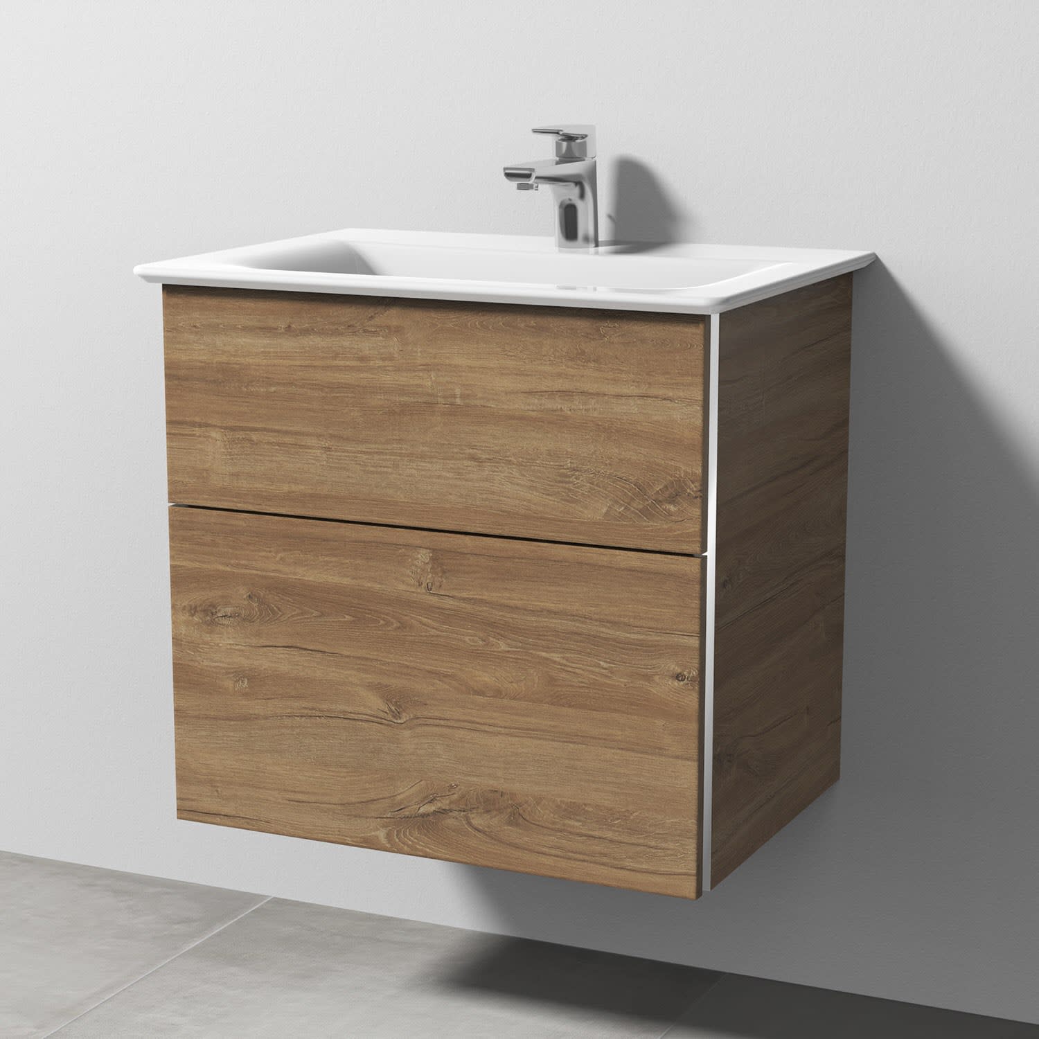 Sanipa 3way Waschtischunterbau für Keramik-Waschtisch Connect Air 64 cm, 2 Auszüge mit Griffleisten
