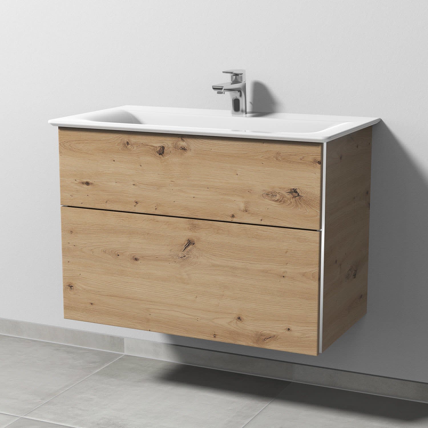 Sanipa 3way Waschtischunterbau für Keramik-Waschtisch Connect Air 84 cm, 2 Auszüge mit Griffleisten