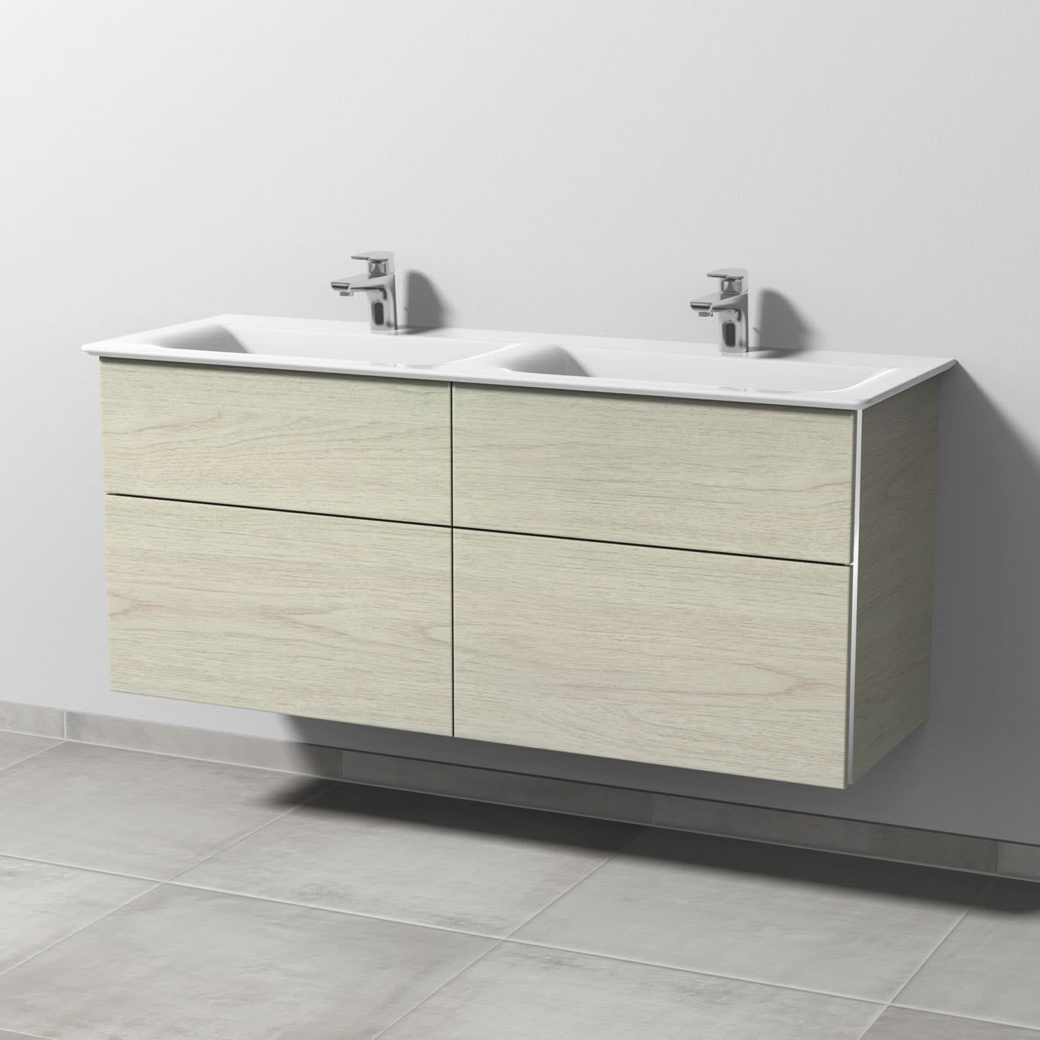 Sanipa 3way Waschtischunterbau für Keramik-Doppelwaschtisch Connect Air 134 cm, 4 Auszüge mit Griffleisten