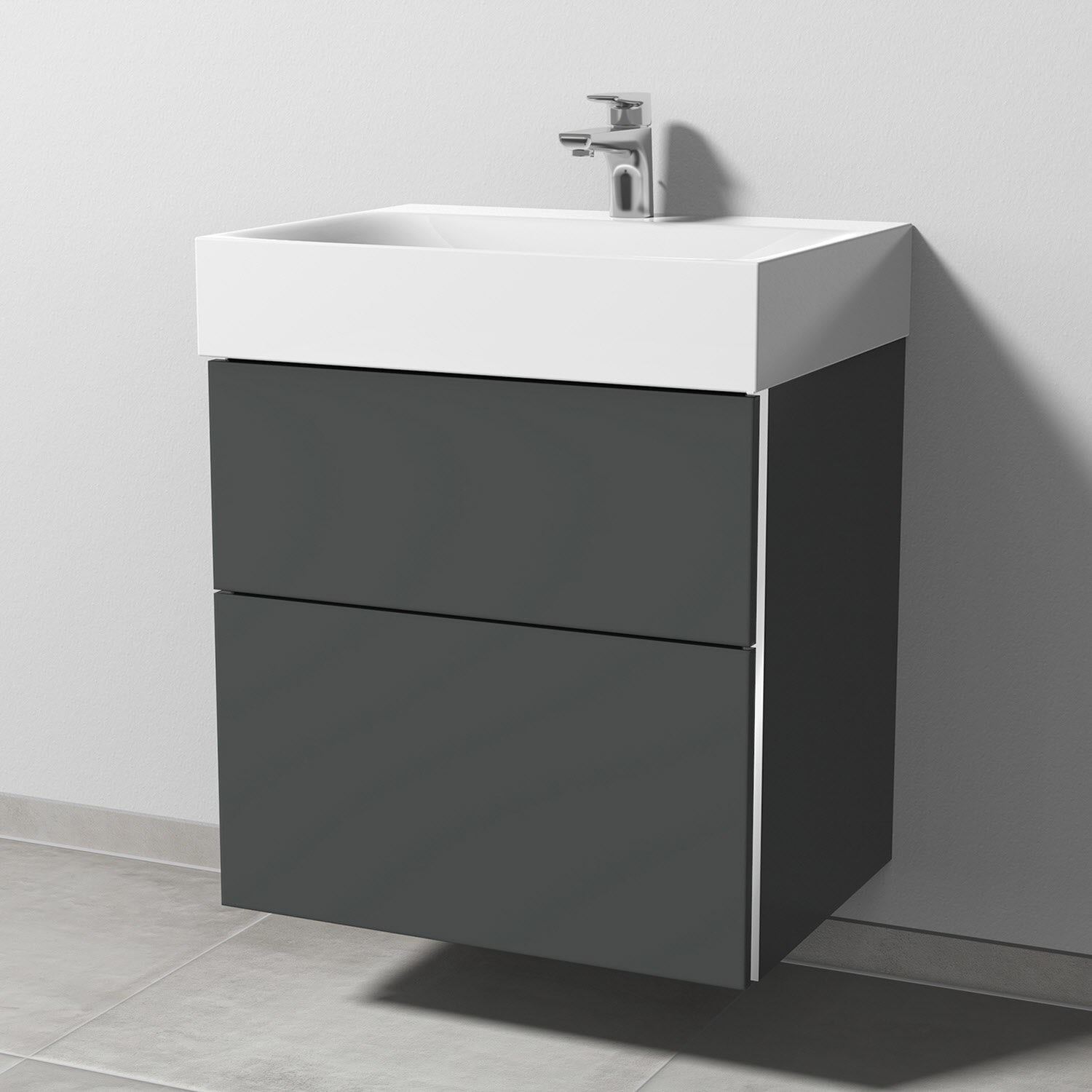 Sanipa 3way Waschtischunterbau für Stahl-Email-Waschtisch Silenio 60 cm, 2 Auszüge mit Griffleisten