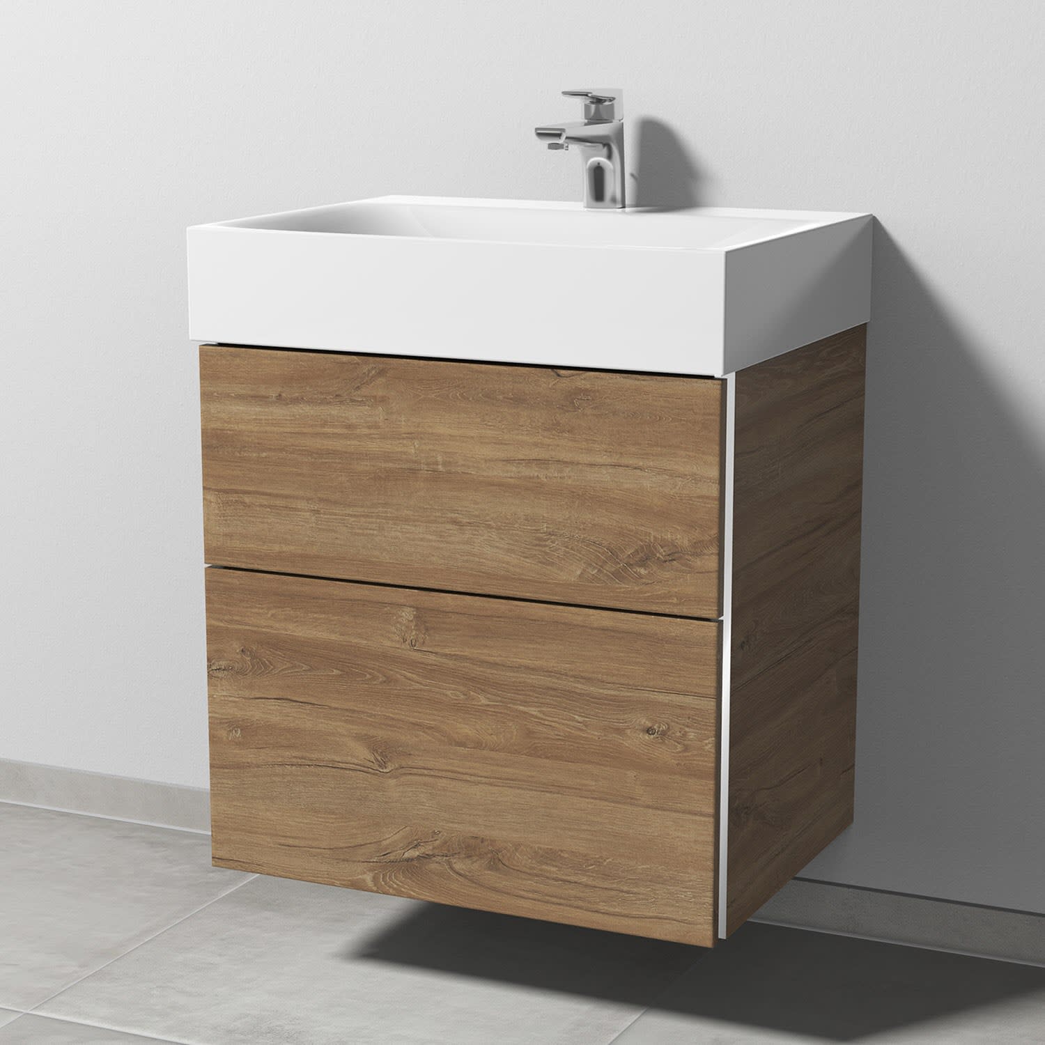 Sanipa 3way Waschtischunterbau für Stahl-Email-Waschtisch Silenio 60 cm, 2 Auszüge mit Griffleisten