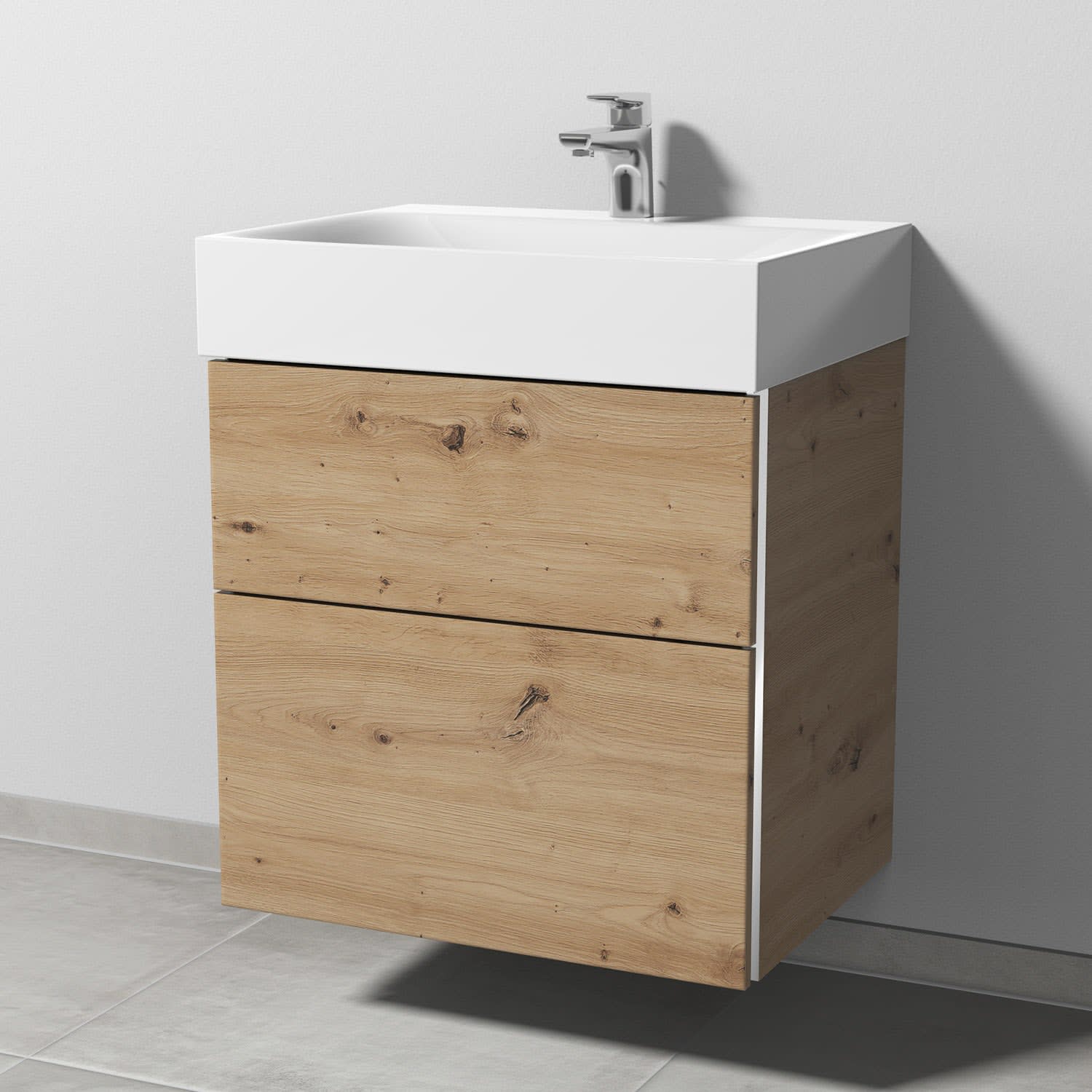 Sanipa 3way Waschtischunterbau für Stahl-Email-Waschtisch Silenio 60 cm, 2 Auszüge mit Griffleisten
