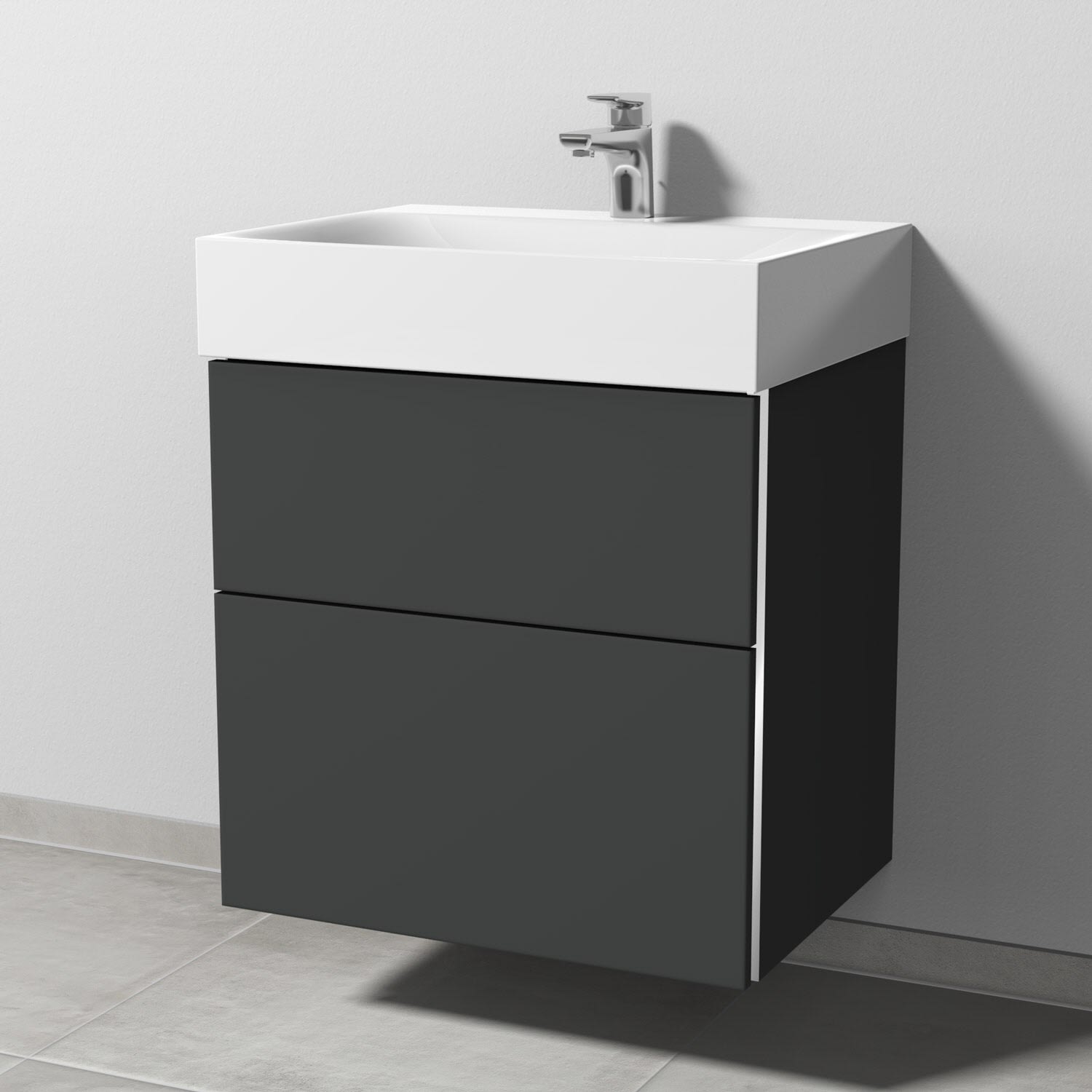Sanipa 3way Waschtischunterbau für Stahl-Email-Waschtisch Silenio 60 cm, 2 Auszüge mit Griffleisten