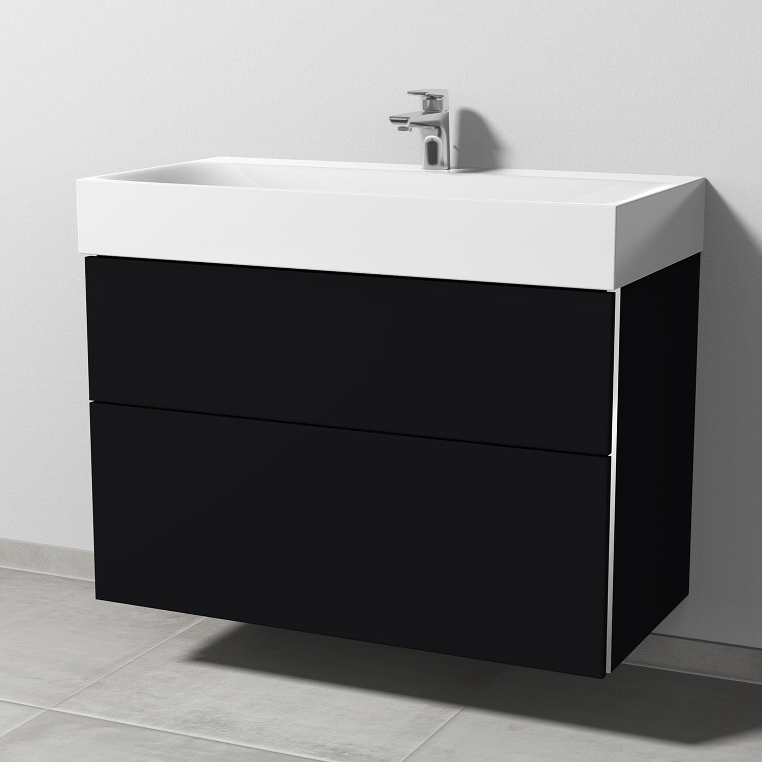 Sanipa 3way Waschtischunterbau für Stahl-Email-Waschtisch Silenio 90 cm, 2 Auszüge mit Griffleisten
