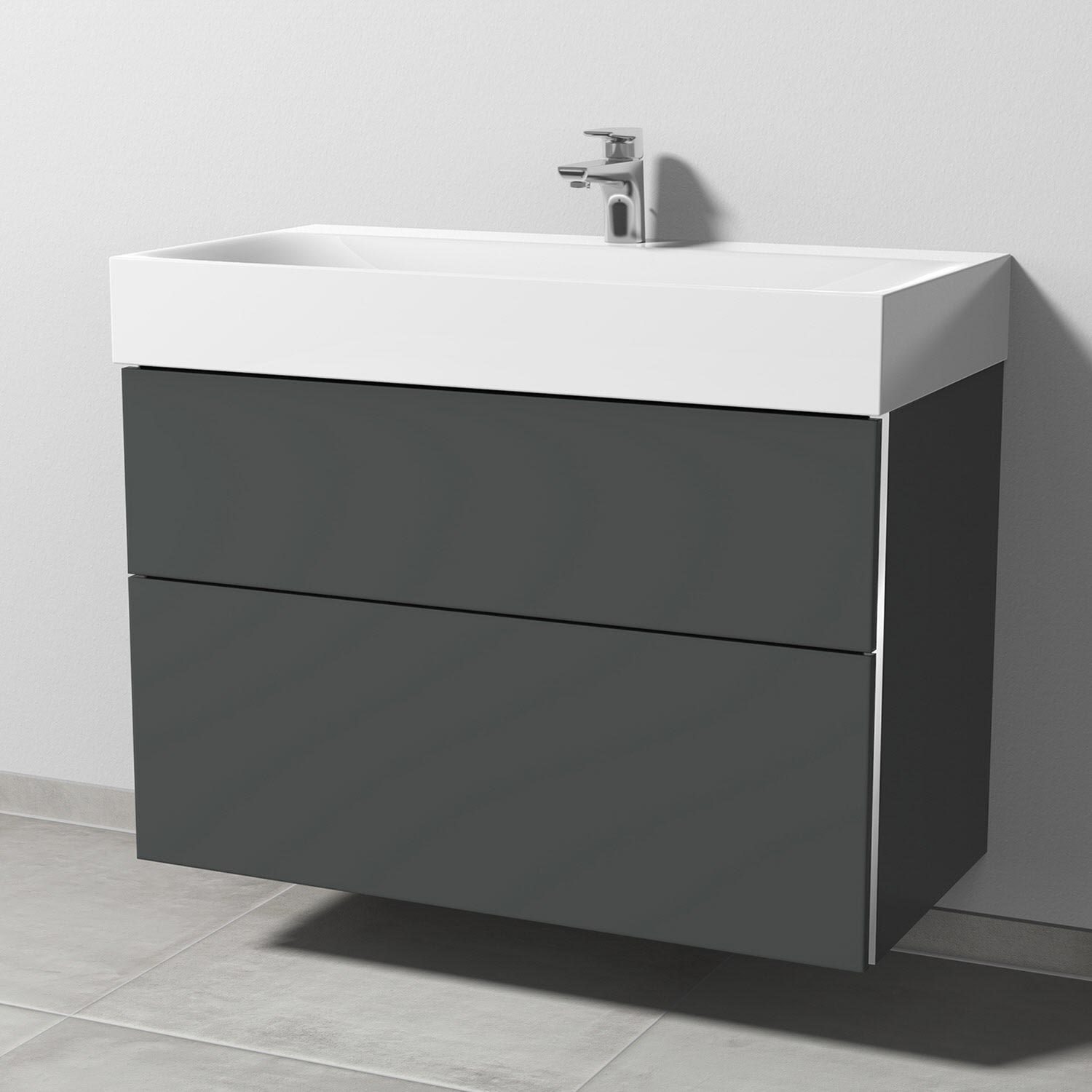 Sanipa 3way Waschtischunterbau für Stahl-Email-Waschtisch Silenio 90 cm, 2 Auszüge mit Griffleisten