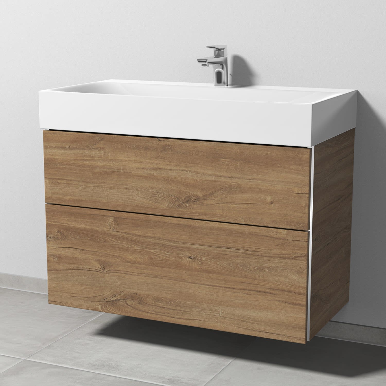 Sanipa 3way Waschtischunterbau für Stahl-Email-Waschtisch Silenio 90 cm, 2 Auszüge mit Griffleisten