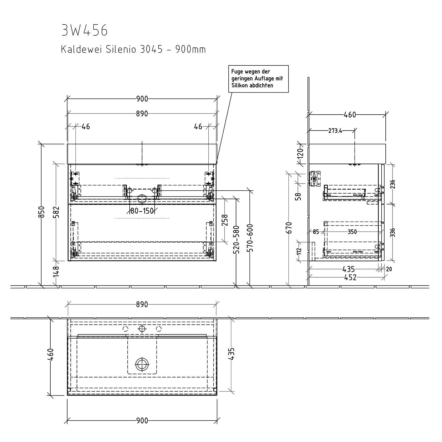Sanipa 3way Waschtischunterbau für Stahl-Email-Waschtisch Silenio 90 cm, 2 Auszüge mit Griffleisten